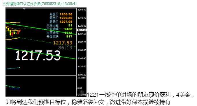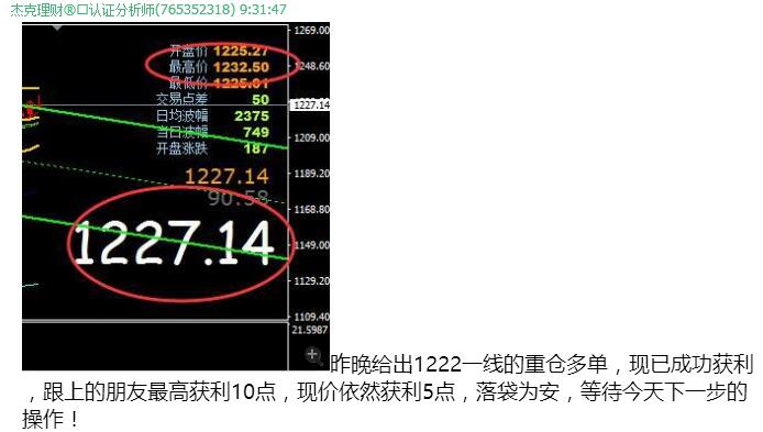 | 窮人總是喜歡做夢,富人一直不斷行動,而機會總在猶豫不決中慢慢流失。這里有最扎實的技術,也有最人性的服務。只要你嚴格執行做單策略,操作就是如此簡單。 誠信雙贏 互惠互利。在這里,你會得到意想不到的收獲。跟對單贏一次,跟對人贏一世,先再合作,我們實力說話,準確率92%以上,專業的經紀人比的是穩定,專業,服務態度。穩健盈利才能真正實現財富翻倍。 黃金今日 3單 損1單 今日喊單總結: 黃金: 1》1215.81空,止損1219.81,損4點 2》1221.23空,止盈1215.79,獲利6點 3》1222.52多,止盈1232.50,獲利10點 總計:黃金12點 按標準倉位10手計算,黃金獲利12000美金 共12000美金(約合8.16萬 RMB) 100手計算,黃金獲利120000美金 共120000美金(約合81.6萬 RMB) 1:我們沒有模糊的區間,只有精確的做單點位。 2:沒有百分百的準確,只有穩定的盈利。 3: 沒有爾虞我詐,只有一顆真誠的心。 4: 只要讓客戶長期的收益,我們才能長期的合作,這才是王道。 |