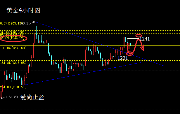 基本面: 周四(2月25日)國際黃金早盤走探底回升,于1221反彈至1236后小幅回落。昨日受到美國股市大跌的影響,避險(xiǎn)需求推動金價(jià)大幅走高,甚至一度突破1250美元/盎司,不過黃金市場最終沒能維持住該水平,最后日內(nèi)僅小幅收高。 黃金市場在周三一度大漲超1.5%,觸及1253美元/盎司的一周多高點(diǎn)。周三美股追隨原油市場跌勢,三大股指紛紛下跌,跌幅均超1.5%。道指開盤后大跌近250點(diǎn),標(biāo)普500指數(shù)跌29.37點(diǎn),納指跌75點(diǎn)。美債價(jià)格擴(kuò)大漲幅,10年期美債收益率跌破2016年最低收盤位。歐洲股市全面下跌。亞洲股市除中國以外普遍錄得下跌。 有避險(xiǎn)需求的投資者們似乎再度將黃金作為選擇,因此吸引了大量交易,即使美元的上漲也沒能對此有影響。在市場風(fēng)險(xiǎn)需求減弱的情況下,黃金市場在走高,但周三的表現(xiàn)之所以突出是因?yàn)椋词姑涝蠞q金價(jià)也在上漲。盡管亞洲地區(qū)實(shí)物黃金需求比較疲軟,但黃金ETF有強(qiáng)勁流入,后者抵消了很大部分的疲軟實(shí)物需求。 黃金市場能否持續(xù)上漲,還是要看美聯(lián)儲加息預(yù)期,市場目前預(yù)計(jì)今年美聯(lián)儲只加息一次,或者不加息。達(dá)拉斯聯(lián)儲主席卡普蘭(Robert Kaplan)周二表示,對于提高利率,美聯(lián)儲可能需要比去年年底所預(yù)期的更加耐心。他認(rèn)為,對于在較長一段時(shí)間里維持利率不變,美聯(lián)儲應(yīng)保持開放態(tài)度。不過美聯(lián)儲二號人物副主席費(fèi)希爾(Stanley Fischer)周二稱,全球金融市場近期低迷是否會對美國經(jīng)濟(jì)產(chǎn)生巨大影響,這一點(diǎn)目前還不清楚。費(fèi)希爾特別重申,如果美國就業(yè)率在一段時(shí)期內(nèi)高于充分就業(yè)程度,將是“適宜的”。同時(shí),如果就業(yè)率超過公認(rèn)的“自然”水平,理論上可能導(dǎo)致通脹急漲,那樣就可能迫使美聯(lián)儲快速行動。 技術(shù)面: 黃金:從日線圖看,昨日行情沖高回落,日線上最終收取一根上影線極長射擊之星,市場整體呈現(xiàn)寬幅波動,昨日早盤行情走震蕩上行,美盤時(shí)段行情虛破1262-1181回撤拉升的0.382位置后受阻回落,午夜行情一路下行,最低給到1227后受阻整體,日線最終收于1228.5附近,在這種收線的情況下,今日有望繼續(xù)走低。早間行情延續(xù)回落,將昨日的漲幅全部回吐,有構(gòu)筑雙頂?shù)男螒B(tài),但早間金價(jià)觸及日線10日均線1221支撐后開始走反彈,此位是1263-1240下降趨勢線的反壓力位,具有強(qiáng)勁支撐,故早間在VIP給出1222做多的策略,多單目前于1236一線獲利平倉,但早間反彈的速度太快,有洗盤的嫌疑,所以今天一定不要去追高。從4小時(shí)圖看,昨日行情早間直接上破4小時(shí)趨勢線1227的壓制,晚間上破1263-1181回撤反彈的0.618位置,于1263-1181回撤反彈的0.382位置受阻回落,而當(dāng)前下方支撐位于4小時(shí)1263-1240下降趨勢線反壓力位1221一線,此位是今日的重要支撐,若下破此位,行情有望延續(xù)下行。當(dāng)前4小時(shí)短期均線并排上行,MACD雙線金叉縮量,隨機(jī)指標(biāo)并排下行,4小時(shí)短期空頭占優(yōu),當(dāng)前上方壓力位于昨日凌晨二次修正點(diǎn)1241一線,強(qiáng)壓1244,下方支撐位于依舊是位于下降趨勢線的反壓力位1221一線。操作上,今日以逢高做空為主!
