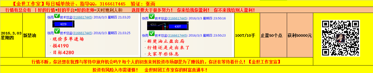 張雨:3.4【金評】非農來臨,新楚油日線收取十字星,非農會拐頭向下? 國際油價從最低點反彈至今漲幅已超30%,價格令供需產生調節。分析人士認為,原油市場的最差時刻或已經過去。紐約油價2月11日跌至12年來低點,收于每桶26.21美元。面對油價縮水,產油國無法無動于衷。當月16日,石油出口大國俄羅斯、沙特阿拉伯、委內瑞拉和卡塔爾就凍結石油產量達成共識,同意將石油產量凍結在今年1月的水平,國際油價從低點逐步走高 近期美國能源信息局的數據顯示,美國日均原油產量已連續多周出現環比下降。英國能源視線咨詢公司首席石油分析師阿姆里塔·森說,由于原油廠商缺乏資金,美國、亞洲、北海以及俄羅斯等地區的原油產量都出現下滑,而這只是減產的開始。美國私募股權公司河石控股合伙人馬克·帕帕表示,過去幾年,美國原油行業誕生了很多公司,尤其在頁巖油氣領域。預計未來6到12個月,將會出現許多企業破產、很多人失業,而存活下來的企業在未來的經營中會變得非常謹慎,整個行業會變得更加成熟 連續三天油價不跌反漲,說明多頭外柔內剛。雖然漲幅不大,走勢相當磨蹭,但歷史經驗表明,反彈行情往往在猶豫中縱深發展,在看似要卡殼的地方陡然變軌加速上漲。所以,近期油市,不要輕易猜頂;就算油價漲不動了,真跌下來了,也是技術回打,或者說是筑底,而不是新一輪跌勢開啟 今日昨晚本月的非農日,可謂是備受關注,而回顧昨日的行情,一直是處于一個區間震蕩,沒有一個太大的波動,也許是為了今日的大風大浪。而銅昨日受數據面影響,直線上升至之前的高位點,上沖勢能充足,預測今日繼續沖刺新高。重點需關注晚間的非農數據 回顧昨日行情: 亞盤時間段價格震蕩上漲創日內新高隨后快速下跌,歐盤價格繼續緩慢下跌刷新日內新低,美盤持續拉升刷新日內新高后回落。 原油,最近都是亞盤歐盤慢跌向下,尋求支撐再創新高,近期經過復盤之后,主要是震蕩式上漲,做多是主要的,博回落是輔助。日線級別,整體的上升趨勢線依舊未能打破,但布林通道已經打開,我們的中線多單是可以繼續持有的 新楚油技術分析: 原油連續從四小時走勢圖來看,均線系統整體呈多頭排列,雖然5日均線拐頭走平,但下方10日、22日等均線不斷向上運行,K線價格沿著5日均線在10日和22日等均線上方震蕩交投,雖然油價在沖高后有所回落,但下方均線的支撐力較強,且低點在不斷上移;MACD指標快慢線在0軸三鋼粘合走平,KDJ指標也趨平。綜合來看,快線價格雖受下方均線的支撐,布林帶向上行走,布林帶中軌有壓力 日線昨日收取十字星,5,10,22日均線排列向上行走,昨日晚間大漲之后迅速大跌下來,形成倒立的深V,下方5日均線支撐,低點不斷刷新 新楚油3.4操作策略: 今日非農,具體操作建議不給,如有合適進場點位,本人會在群里給出,如需喊單請聯系本人,帶你進群體驗 【今日重點關注的財經數據與事件】2016年3月4日 周五 ① 21:30 美國2月失業率、2月季調后非農就業人口、1月貿易帳 ② 次日02:00 美國至3月4日當周石油鉆井總數 既然是非農日,最近歐佩克與伊朗又是頻繁爆發出各種刺激性信息,本日做單,必須得謹慎,嚴格止損。跟上趨勢,有技巧的操作,數據為輔技術為主,摒棄雜念專心致力于每一波行情時,你就能掌控每一波的行情 |