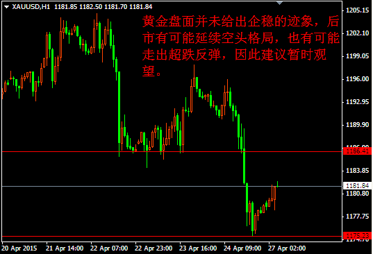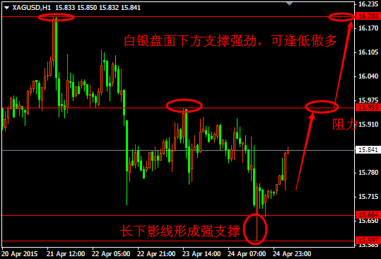 | 行情回顧 上周五(4月24日)金銀開盤于1193/15.87,亞歐盤中盤面維持區間震蕩的格局,至美盤時段,金銀盤面開始承壓下行,最低下探到1175/15.58,盤尾金銀盤面企穩小幅上行,最終收盤于1178/15.77,日圖中金銀均收陰線。 基本面分析 上周五(4月24日)歐洲方面僅德國公布了經濟數據,德國4月IFO商業景氣指數為108.6,好于預期的108.4,前值為107.9。數據公布之后提振歐元即時反彈,但提振幅度較為有限,歐元總體維持前期的震蕩反彈格局。金銀對數據即時反響有限。 美國方面公布的3月耐用品訂單月率為4%,大幅好于預期的0.6%,前值為-1.3%,因飛機及汽車需求上升的拉動。數據走好支撐美指小幅反彈,金銀承壓走出一波快速下行。 今日(4月27日)僅英國方面公布4月CBI工業訂單差值,該數據不是關鍵數據,預期對金銀影響很小,稍作關注即可。本周重點關注周四(4月30日)凌晨的公布美聯儲利率決定。此外,由于非農數據通常在每個月的第一個星期五公布,但由于本周交易日內只有一天是五月份,因此ADP數據等都未公布,非農數據也將推遲至下周五(5月8日)才公布。 技術面分析 上周五黃金收出中陰線,而白銀收出帶有下影線的小陰線,說明黃金盤面要弱于白銀,而白銀的下影線則是一個很好的止跌反彈信號,因此白銀盤面后市下跌的空間會比較有限,那么可以依托這根下影線逢低做多抓反彈。而黃金盤面下跌速度較快,但并沒有很好的企穩信號,因此盤面上下都是有可能的,因為沒有企穩信號,那么盤面繼續下跌是有可能的,但超跌盤面由于下跌幅度較大,因此超跌反彈也是有可能的,那么這就難以判斷盤面要怎么走了,因此黃金盤面可以暫時觀望,主要做白銀為主。 黃金盤面上周五快速下行,最低下跌到1175附近,說明盤面空頭占據優勢,由于盤面下跌幅度較大,因此存在超跌反彈的可能,但盤面并未給出企穩的跡象,因此是否能夠順利走出反彈也有待跟進,因為盤面也可能維持震蕩調整。因此黃金盤面短線在這里上漲下跌都有可能,因此建議暫時觀望。 白銀小時圖中盤面前期盤面循環下行,上周五最低下探到15.58附近,并且收出了一根帶有長下影線的K線,說明下方有多頭接盤,或者盤面空頭回補倉位,這就暗示后市繼續下跌的空間將會很小,因盤面再次回撤的時候會受到上周五盤面形成的下影線的支撐,那么后市做多的風險就會相對小一些,因此建議逢低做多為主。 交易策略 白銀盤面短線有企穩的跡象,后市下跌的風險較小,故建議逢低做多為主,止損在15.5,目標看15.95,突破進一步上看16.2,黃金盤面上下均有波動的空間和可能,建議暫時觀望,關注區間1186-1175。 今日關注 18:00英國4月CBI工業訂單差前值:持平 金銀家策略研究所:寧桂毅 個人觀點,僅供參考 2015.4.27 |