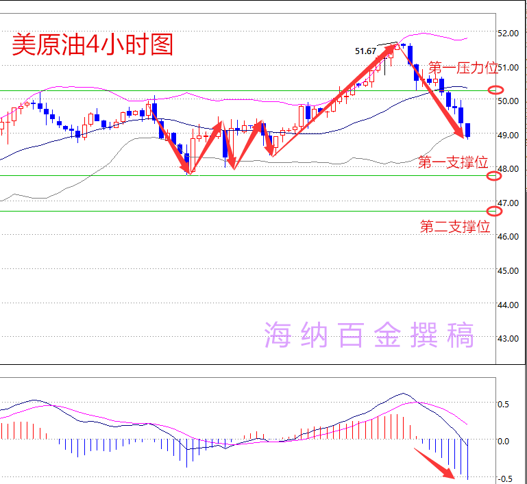 近幾個月油價從年內低點持續反彈,美國WTI和布倫特原油價格均突破50美元關口,市場越發確信油價已經探底成功;油價反彈主要驅動因素在于供給面發生改變;美國原油產量自今年以來減少了50萬桶/日,原油庫存的增速放緩;也就是說,美國原油庫存仍在繼續增加,顯示需要進一步削減產量才能讓供需達到平衡;隨著供應受到限制,油價未來進一步反彈的力度或將放緩;第一季度原油需求高于預期,但由于全球經濟增長前景疲軟,總體需求依然保持適度。 周五(6月10日)美國油服公司貝克休斯(Baker Hughes)公布數據顯示,截至5月10日當周,美國石油鉆井平臺數量增加3臺,顯示出在前期油價反彈進程中,美國石油產量有增加的前景。具體數據顯示,美國6月10日當周石油鉆井數增加3至328臺,上周為325臺;美國6月10日當周天然氣鉆井數增加3臺至85臺,前值為82臺;美國5月27日當周總鉆井數增加6臺至414臺。 市場行情大家都看得見,油井增加了,那么油的產量相應的也會增加,但是市場任何物品都是有個平衡性和固有價值的,相對于目前的產量以及存貯,油價下行是有阻力的,下面以美原油講解下,油價再次回落到50美元下方,報價48.88美元,下方兩個支撐點,分別在48和47美元附近,為什么在這兩個點,第一個是之前上行通道的起點,第二個則是上周eia利空不跌的一個低點,macd也是像下放量,走勢來看還是利空的,但是這兩個支撐位需要大家關注,尤其是上周五還有套單的朋友,現在姑且不說你套了多少個點,你在哪里做的,你若是做的空單,做在了地板上,那么有點危險,周一開盤,無論跳高還是低開,都出掉,若是你做的多單,那就要考慮下你的倉位能不能堅持到我所說的第二支撐,能的話就持有,個人看好一波反彈。 下面我就以長江油為例,給大家一點下周原油操作的策略: 第一:若下周高開,可選擇在上方壓力227附近做個空單,默認最小損即可。 第二:若是低開,可選擇在下方第一第二支撐做多單,同樣最小損,至于是在第一支撐做還是第二支撐做可以看下方macd開始縮量的時候。 最后送大家一句話: 你的今天取決于昨天的決策,你的明天取決于你今天的決策。在金融市場,沒有永恒的勝者,也沒有永恒的敗者,能夠堅持到最后,笑到最后的才是真正的贏家! 若是喜歡我的朋友,可以關注我 |