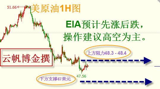 美原油在48.30-48.40進場空單,止損48.70上方,目標看47.00-46.70。