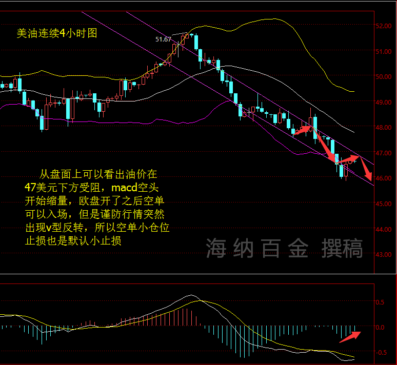 一個人經歷的越多,就抱怨的越少,不言不語,不是不說,只是不想說,無聲無息,不是無心,只是沒人懂。難聽的不是臟話,而是謊話,就好比美聯儲忽悠全世界一樣。所有人都想在非農后說一句:我不怕別人在我背后捅一刀,我怕回頭后,看到背后捅我的人,是我用心對待和相信的人。 周四(6月16日),美盤油價大跌,美油布油雙雙跌逾3%,英國退歐公投的不確定性對油價帶來重壓。 目前市場聚焦將于6月23日進行的英國退歐公投。若英國退歐成功,歐元區貨幣將大打折扣,拉升美元,原油等大宗商品將承壓。 英國退歐公投將近,民調顯示退留意向焦灼,有關英國將脫離歐盟的言論甚囂塵上。英國國際金融地位首屈一指,英國退歐將置歐洲于衰退境地,全球經濟前景將因此蒙陰,對原油市場需求根基將帶來重創。 世界經濟論壇會議在俄羅斯圣彼得堡市召開。俄羅斯能源部長諾瓦克(Alexander Novak)表示,他與委內瑞拉油長品諾(Eulogio del Pino)討論了下一個“凍產”合作的可能性。諾瓦克稱,鑒于目前油市走軟,進一步合作凍結產量成為可能。今年4月,俄羅斯在內的主要產油國動產會議破產。市場似乎對OPEC等國家表態變得麻木,該言論并未對油價形成多大提振。 上周,美國石油鉆井平臺錄得連續兩周上漲,總數增加至328個。近期油價漲勢使得美國頁巖油生產廠家利潤擴大,美國原油產量下降勢頭或將很快終結,這也使得油價承壓。 據國際能源署(IEA)公布的數據顯示,5月份伊朗的原油產量高達364萬桶/日,而此時距離國際制裁措施被撤銷才剛剛過去了四個月,創下自2011年6月份以來的最高水平。 此前伊朗工業部表示,伊朗石油產量在2-3個月內將達到制裁前水平。 就今日行情而言,早間原油再次創下新低,報價45.83,這周開始的時候,我就說過,原油此次下跌會跌落到45美元附近,由于昨晚空頭的大量涌現,今天行情有波回調實屬正常,但是不能就此就該做多了,那么今天該怎么操作了,從圖中畫的線可以看出,下午三點半,這個點,已經到我所畫油價承壓的點位,所以這個時候做空,但是空方也不是很強,所以空單小倉位進,止損同樣也是小損。 最后若是有朋友需要詢問我相關行情之前,請朋友先思考下下面這些問題 1、你平時操作是如何看待行情? 2、你是怎么樣去把握行情的呢? 3、在投資的時候你是如何規劃資金? 4、你是怎么樣看待這個市場的? 5、你覺得指導老師的用處有多大? |