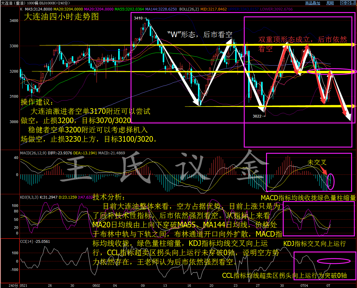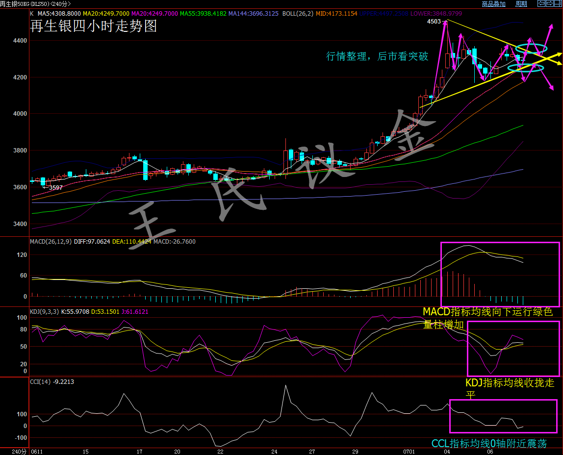 消息面: 美國WTI原油8月期貨周三(7月6日)收漲0.83美元,或1.78%,報47.43美元/桶。布倫特原油9月期貨周三收漲0.84美元,或1.75%,報48.80美元/桶。英國脫歐引發(fā)的擔(dān)憂依然持續(xù)升溫,不過投資者逢低買入支撐油價實現(xiàn)反彈,同時美國庫存續(xù)降的預(yù)期也部分改善了市場的投資情緒。美國WTI原油期貨價格盤中最高觸及47.66美元/桶,布倫特原油期貨價格盤中最高觸及49.08美元/桶。 市場回顧: 昨日大連油市場回顧,最高點3195,最低點3078,市場波動117點。 行情回顧: 昨日大連油行情走勢回顧,亞盤時間段行情震蕩下跌后反彈上漲,歐盤時間段行情下跌,美盤時間段行情震蕩上漲刷新日內(nèi)新高后回落。 技術(shù)面: 目前從大連油四小時走勢圖分析,價格處于布林帶下限與中軌之間,布林道開口向外擴散,MACD指標均線收攏綠色量柱縮量,KDJ指標均線交叉向上運行,CCL指標均線超賣區(qū)拐頭向上運行未到達0軸附近。說明空方依然占據(jù)一定優(yōu)勢,綜合各指標分析的出,價格短期小幅度上漲,預(yù)計后市行情下跌。 操作建議: 今日大連油整體趨勢以逢高做空為主,以低多為輔。 日內(nèi)阻力:3200/3270 日內(nèi)支撐:3070/3020 激進者空單3170附近可以考慮擇機入場做空,止損3200上方,目標3070/3020。 穩(wěn)健者空單3200附近可以考慮擇機入場做空,止損3230上方,目標3100/3020。 激進者多單3070附近可以考慮擇機入場做多,止損3040下方,目標3140/3170. 穩(wěn)健者多單3050附近可以考慮擇機入場做多,止損3020下方,目標3100/3140。 以上操作建議僅供參考、投資有風(fēng)險、操作需謹慎 消息面: 國際現(xiàn)貨黃金周三(7月6日)沖至兩年高位,美市盤中最高上探至1374.91美元/盎司,已突破前期高點。英國脫歐后的恐慌繼續(xù)蔓延,歐股周三下跌,德國10年期債券收益率也連續(xù)第二日錄得新低,迫使投資者尋求避險,黃金因此獲得上漲支撐。日內(nèi)公布的多項美國數(shù)據(jù)有喜有憂,美國6月服務(wù)業(yè)采購經(jīng)理人指數(shù)(PMI)終值略高于初值和5月終值,但仍是一月份以來最低的;美國6月ISM非制造業(yè)指數(shù)升至56.5,為2015年11月來最高;美國7月2日當(dāng)周紅皮書連鎖店銷售年率增長0.6%;美元走高令出口繼續(xù)承壓,美國5月貿(mào)易逆差增幅超過預(yù)期。 市場回顧: 昨日再生銀市場回顧,最高點4381,最低點4240,市場波動141點。 行情回顧: 昨日再生銀行情走勢回顧,亞盤時間段行情震蕩上漲,歐盤時間段行情震蕩下跌,美盤時間段行情下跌刷新日內(nèi)新低后快速反彈。 技術(shù)面: 目前從再生銀四小時走勢圖分析得出,價格處于布林帶中軌與上軌之間震蕩,MACD指標均線向下運行綠色量柱增加,KDJ指標均線收攏走平,CCL指標均線0軸附近震蕩。綜合各指標及盤面分析得出,價格短期上漲無力,預(yù)計后市看突破。 操作建議: 今日再生銀整體趨勢以逢高做空為主,以低多為輔。 日內(nèi)阻力:4360/4420 日內(nèi)支撐:4220/4170 激進者多單4260~4270區(qū)間內(nèi)可以考慮擇機入場做多,止損4230下方,目標4360/4420。 穩(wěn)健者多單4200~4210區(qū)間內(nèi)可以考慮擇機入場做多,止損4170下方,目標4260/4320。 激進者空單4360~4370區(qū)間內(nèi)可以考慮擇機入倉做空,止損4390上方,目標4300/4260。 穩(wěn)健者空單4420~4410區(qū)間內(nèi)可以考慮擇機入場做空,止損4450上方,目標4360/4300。 以上操作建議僅供參考、投資有風(fēng)險、操作需謹慎 今日可以關(guān)注的財經(jīng)數(shù)據(jù): ★★★ 02:00 美聯(lián)儲FOMC將公布6月貨幣政策會議紀要 今日可以關(guān)注的財經(jīng)事件: ★★★ 02:00美聯(lián)儲FOMC公布6月貨幣政策會議紀要 19:30歐洲央行公布6月貨幣政策會議紀要。 以上操作建議僅供參考、投資有風(fēng)險、操作需謹慎。 【以實盤操作建議為準】 咨詢電話:4000346068 詳細實時行情解析及實盤操作建議聯(lián)系老師本人微信:wangkangjun018 王老師寄語: |