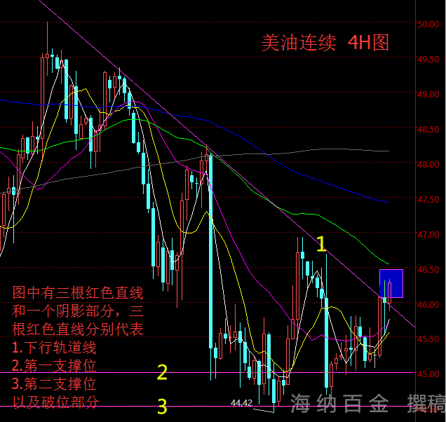 有人把雞肋行情當成了雞腿,結果什么也沒有得到,白白浪費了時間,而有的人,卻把雞腿行情當成了雞肋,結果卻與利潤揮手說再見!多空均有利潤,只是震蕩的時間讓太多的人進入了夢想,等待成為了痛苦的代名詞!而懂得等待的人才是真正會交易,懂得“狩獵” 市場沉沉浮浮,行情多空反復易變,最近的油市亦是如此,回顧上周行情,上周從周一開始行情一整天就在45美元上下震蕩,周二上演了從45美元下方漲到觸及47美元的單邊上漲行情,周三公布EIA數據,行情又從47美元跌至周二的初始位置45美元下方,至此我就在多篇文章中提到,油價已經企穩于45美元了,于是周四到周五兩天收陽,行情再次到達46.5美元附近,這也是我為什么說最近油市多空反復。 還記得上周三,從早間的API到晚間EIA數據皆顯示利空油價,這也不是空穴來風,美國連續幾周的鉆井數據增加為利空原油提供了有力的證據,但是從這個利空幅度來說,并不是很大,而且從行情走勢圖上看來44美元提供了強有力的支撐,不然市場為何在45美元區域交易密集了?,壓力位和支撐位有時候可以直接從交易的密集程度來分析。北京時間01:00公布:美國至7月15日當周石油鉆井總數。數據顯示美國至7月15日當周石油鉆井總數增加了6口,而 美國至7月15日當周天然氣鉆井總數也是增加了7口;這很符合美國人的習慣:增產和減產具有很大的連續性,此次鉆井數據也是連續第8周增加,但是行情表現方面卻不甚給力,直至收盤,油價不跌反漲,那么說明45美元企穩的信號還是有效的,v信hlbaijing所以本人也大膽推測,下周油價還有更高的突破。 一次的成功并不足以說明什么,但是當我一次次戳中行情要點的時候,那么你就需要認真省思了 下周行情展望: 上周行情直至周五晚原油鉆井數據出來前都沒有突破下行軌道線,并且支撐于第一和第二支撐位,但是鉆井數據公布后,顯示值利空油價,可是行情卻出現了反轉,突破了下行軌道線,也就是圖中的陰影部分,一直到收盤都維持著高位,似乎還有進一步上升的空間,不過也確實是這樣,我認為油價還要漲,但因為周末休市的關系,本人推測油價周一開盤跳高至47美元美元是沒有多大問題的,如果漲到47美元上方該怎么操作了? 1.小時線若繼續收陽,可在47美元做多,直指48美元,(長江油點位310一線做多,看到314) 2.若開盤就有下跌跡象,直接47美元做空,油價可能再次回到45美元(長江油點位313附近做空,看到300) 最近國際形勢也是比較緊張,南海爭端可能導致亞洲原油輸送路線受阻,ISIS這個不穩定因素也可能隨時攪亂油市風云,還有伊朗,沙特等原油產出國原油產量都需要投資朋友們密切關注。 雖然行情分析不是萬能的,但是你總得備著,就像天氣預報說要下雨,但是外面卻是晴空萬里,你能不帶傘么? |