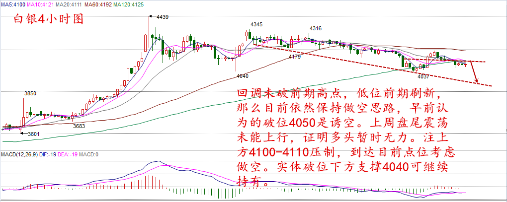 | 個人投資者,憑一己之力面對市場,很容易出現當局者迷的情況,專業的事情,交給專業的人來做。如果每次大行情來了你還在迷茫,那就選擇我們吧。我們的職責就是把握好震蕩,決策好單邊,不管你是實倉,還是模擬,新手還是老手,套單還是鎖單都可以聯系我們,聽一下分析只會對你百益而無一害。 白銀美盤走勢: 上周波動較小,周線錄得一根實體短陰線,日線上看,上周五錄得一根錘子陰線。從上圖看,本周開盤,仍然保持回調,目前走勢仍在震蕩當中。 思路上,回調未破前期高點,低位前期刷新,那么目前依然保持做空思路,上周認為的破位4050是誘空。盤尾震蕩未能上行,證明多頭暫時無力。現在看來,下方破位卻是給多頭的殺機。關注上方4100-4110壓制,到達目前點位考慮做空。實體破位下方支撐4040可繼續持有。 操作上,4100附近做空,止損4130上方,目標4040,破位可持有。 天然氣方面: 在天然氣價格到達高位,目前已連續三周回調,上周五暴漲周線錄得一根十字陰線。日線上,自然是錄得一根實體陽線,指標有轉陽趨勢。從上圖看,本周開盤后,波幅不大,多頭指標有所縮量。 思路上,目前依然好看多頭,但多頭想繼續繼續發散其動能,回調是很有必要的。今日操作等待回調完畢追多。關注上方,5000-4970支撐區間。下行回調至區間內多單介入。 操作上,5000附近做多,止損4960下方,目標5100-5150。 寄語:現貨交易讓我們擁有了一個無限的發展空間。大家在追求高收益的同時要注意對其高風險進行把控和分析,匆忙的投資往往造成了一定的虧損,在此送大家6個字:不追,不抗,不貪!順勢操作,我們才能在市場中立足!專業鑄就品質,服務成就口碑; |