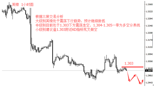 英鎊從4小時圖看,昨日小幅反彈后,依然有繼續下行需求,今日重點關注1.303附近阻力位壓制,建議逢高做空,目標1.290-1.295一帶。