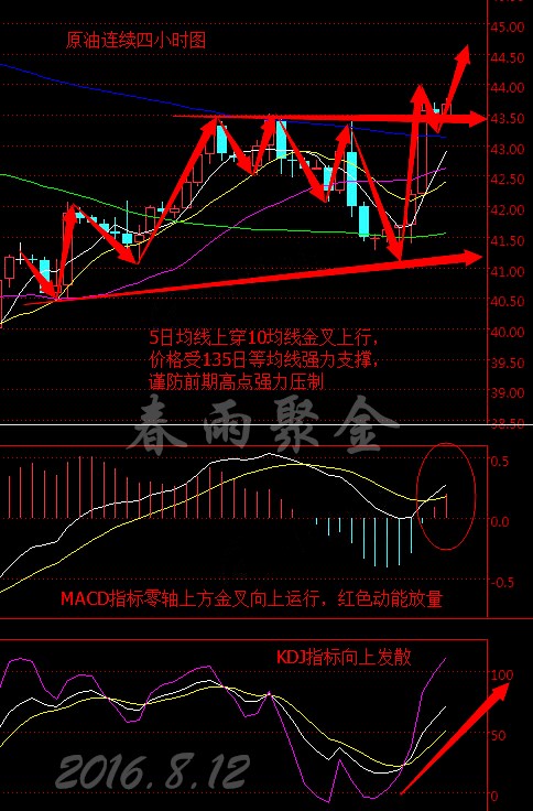原油連續從四小時走勢圖來看,均線系統大致呈多頭排列,5日均線向上貫穿10日均線形成金叉,且繼續上穿22日均線,K線價格沿5日均線拐頭向上運行并受其支撐,目前價格在43.50美元上方整理。MACD指標在零軸上方形成金叉且繼續上行,紅色動能柱不斷放量,KDJ指標向上發散。綜合來看,K線價格受下方135日等均線強力支撐,謹防前期高點強力壓制,預計今日早盤油價將震蕩上行。 8.12今日美原油操作策略: 原油,由于沙特放出話來,從下個月開始要維穩油價,一句話搞的原油直接變盤,回撤臨近黃金分割線0.618的位置之后以41.1為支撐點,這個上漲確實牛逼的亮瞎所有人的眼睛,41.5-41.6早盤如預期的下跌,卻在美盤大幅的盤變,不斷的刷新高點上漲只能用三個字來形容:漲不停,一直漲到了收盤的時候,突破了EIA數據起跌的點43.5的高點。 既然變盤了,那么周線來看,原油短線基本上已經出現了詢問的跡象,要及時的去調整思路,油價受減產影響會短期提升。 周五策略: 今日回踩42.8多,止損止損0.3個點,目標看44和44.5. 43.8-44.2美元附近空單進場,止損0.3個點,目標42.5美元附近 (以上建議僅供參考,風險自擔) 支撐、阻力點位分析: 美元指數 第一支撐:95.80;第二支撐:95.70; 第一阻力:96.00;第二阻力:96.10; 現貨黃金(美元/盎司) 第一支撐:1330;第二支撐:1325; 第一阻力:1340;第二阻力:1345; 現貨白銀(美元/盎司) 第一支撐:19.90;第二支撐:19.80; 第一阻力:20.10;第二阻力:20.20; (以上文章由春雨原創,轉載請注明出處。溫馨提示,投資有風險,入市需謹慎。以上僅代表春雨個人觀點,不作操作依據,據此操作風險自擔) 【春雨操作法則】投資是一個完整體系包括投資理念,投資心態,資金管理風險控制,投資策略,操作手法和思路。 第一、絕不賭博,不要意氣用事去賭行情,特別是有一些重要數據公布前,數據公布前絕不下單,當然一些必要的掛單是可以提前布置的; 第二、嚴格止損,無論什么樣的單子都必須帶好止損,這樣有利于我們把錯誤控制在一定的范圍之內; 第三、果斷操作,絕不猶豫,空就是空,多就是多,加以倉位和分批等辦法來控制風險,能更好的獲利; 第四、絕不貪婪,到了預計的點位果斷進場和離場,我們永遠不能把握到所有的利潤,利潤只有一部分是我們的,行情變化多段,能抓住我們應該抓住的,能抓住的那部分已經很不錯了。 解讀世界經濟要聞,剖析全球經濟大趨勢!追蹤市場動態、直擊全球熱點、剖析突發事件、每日行情解讀。本文作者系CFP注冊理財規劃師,多年從事金融領域相關工作,對現貨大宗商品有豐富的實戰經驗。 |