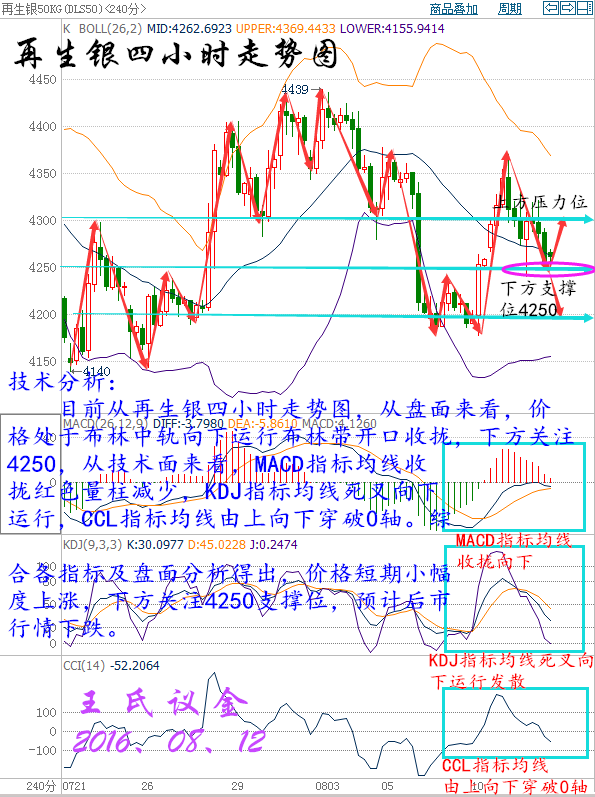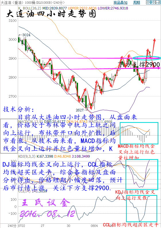 人到了一定的年齡,將不再盤點這一生獲利了什么,而是遺憾曾經(jīng)錯過了什么。別拿自己的盈虧與別人比,你根本不知道別人經(jīng)歷過什么,有些行情錯過了道歉也無法挽回,盈利的時候一定要學會放肆,錯誤的時候卻要及時低頭,風險就像一只野獸要懂得控制,利潤卻像一匹野馬要偶爾放任。 美國WTI原油9月期貨周四(8月11日)收漲1.78美元,或4.27%,報43.49美元/桶。布倫特原油10月期貨周四收漲1.99美元,或4.52%,報46.04美元/桶。沙特能源部長今日放話稱下月產(chǎn)油國會議上將討論穩(wěn)定油市的方案,令原油多頭大受鼓舞,同時國際能源署(IEA)月報也偏向利多,布油重返46美元/桶關(guān)口。美國WTI原油期貨價格盤中最高觸及43.86元/桶,布倫特原油期貨價格盤中最高觸及46.30美元/桶。 大連油技術(shù)分析: ![]() 技術(shù)分析: 目前從大連油四小時走勢圖,從盤面來看,價格處于布林帶中軌與上軌之間向上運行,布林帶開口向外擴散,后市看漲。從技術(shù)面來看,MACD指標均線金叉向上運行并紅色量柱增加,KDJ指標均線金叉向上運行,CCL指標均線超買區(qū)走平,綜合各指標及盤面分析得出,價格短期小幅度回落,預計后市行情上漲,關(guān)注下方支撐2900. 操作建議: 今日大連油整體趨勢以逢低做多為主,以高空為輔。 日內(nèi)阻力:2950/2980 日內(nèi)支撐:2900/2850 激進者空單2920~2930區(qū)間內(nèi)可以考慮擇機入場做空,止損2960上方,目標2900/2880 穩(wěn)健者空單2980~2990區(qū)間內(nèi)可以考慮擇機入場做空,止損3020上方,目標2950/2910。 激進者多單2900~2910區(qū)間內(nèi)可以考慮擇機入場做多,止損2870下方,目標2950/2980。 穩(wěn)健者多單2850~2860區(qū)間內(nèi)可以考慮擇機入場做多,止損2820下方,目標2900/2930。 以上操作建議僅供參考、投資有風險、操作需謹慎。 【以上建議出自中匯天融分析部,以實盤操作建議為準】 再生銀技術(shù)分析: ![]() 技術(shù)分析: 目前從再生銀四小時走勢圖,從盤面來看,價格處于布林中軌向下運行布林帶開口收攏,下方關(guān)注4250,從技術(shù)面來看,MACD指標均線收攏紅色量柱減少,KDJ指標均線死叉向下運行,CCL指標均線由上向下穿破0軸。綜合各指標及盤面分析得出,價格短期小幅度上漲,下方關(guān)注4250支撐位,預計后市行情下跌。 操作建議: 今日再生銀整體趨勢以逢高做空為主,以低多為輔。 日內(nèi)阻力:4300/4350 日內(nèi)支撐:4250/4200 激進者空單4300~4310區(qū)間內(nèi)可以考慮擇機入場做空,止損4340上方,目標4280/4250。 穩(wěn)健者空單4350~4340區(qū)間內(nèi)可以考慮擇機入場做空,止損4380上方,目標4300/4270。 激進者多單4200~4210區(qū)間內(nèi)可以考慮擇機入場做多,止損4170下方,目標4250/4280。 穩(wěn)健者空單4160~4150區(qū)間內(nèi)可以考慮擇機入場做多,止損4120下方,目標4200/4230。 以上操作建議僅供參考、投資有風險、操作需謹慎。 【以上建議出自中匯天融分析部,以實盤操作建議為準】 今日重點關(guān)注的財經(jīng)數(shù)據(jù)及事件: 14:00德國第二季度未季調(diào)GDP年率初值 14:00德國7月CPI月率終值 17:00歐元區(qū)第二季度GDP年率修正值 17:00歐元區(qū)6月工業(yè)產(chǎn)出月率 20:30美國7月零售銷售月率 20:30美國7月PPI月率 22:00美國8月密歇根大學消費者信心指數(shù)初值 22:00美國6月商業(yè)庫存月率 22:00美國8月密歇根大學消費者信心指數(shù)初值 對投資(原油、白銀等)感興趣卻無從下手或者已經(jīng)在接觸卻并不理想的朋友,添加王氏議金分析師微信號wangkangjun018(長按可以直接復制微信號),獲取更多投資實時資訊、行情走勢分析,交易策略指導、歡迎關(guān)注微信公眾號“wkj018” |