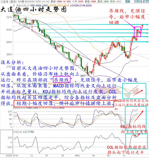 【消息面】 周五(8月12日)歐市盤中,國際油價延續上個交易日的漲勢,因預期石油出口國可能討論穩定油市舉措,以應對供應過剩的情況。隔夜沙特油長放話稱將討論穩定油市,布倫特原油期貨價格和美國原油期貨價格隔夜均暴漲逾4%。 另外,據彭博報道,在6月份油價達到年內高點時墨西哥政府已悄悄買入2017年到期的石油看跌期權,這樣即使2017年油價下跌令該國賣油收入縮水,至少還可保證在期市的利潤;過去十幾年墨西哥年均花費約10億美元購買看跌期權,是全球最大規模的由政府主導的對沖操作,經常會引發油市劇烈震蕩;2009年墨西哥政府的這種套保行為曾獲得高達50億美元的巨額盈利。 美國油服公司貝克休斯(Baker Hughes)周五(8月12日)公布數據顯示,截至2016年8月12日當周美國石油活躍鉆井數增加15座至396座,為連續第七周增長,同時觸及2月26日以來最高水平。 但經濟學家ROGER ARNOLD表示,油價的持續走低將加劇中東地區的緊張局勢,并對石油輸出國組織(OPEC)全體成員國經濟形成猛烈沖擊。 【美原油行情分析】 油價自上周下探39美元下方未果一路反彈,只有在周三API、EIA數據利空時有所遏止,更有非農數據利空后美元指數的走軟,凍產協議的再起,更有尼日利亞產油國的供應中斷,為油價上揚提供了很好的動力。 日線上目前價格位于布林中軌企穩,均線系統金叉呈多頭排列,附圖指標MACD零軸下方交金叉,紅色能量柱增強,短期來看油價的筑底回升已經顯得是更為的有力,日線方面以企穩43美元一線上揚,多頭趨勢強烈,上方上漲空間足;4小時方面,當前價格運行布林上軌一帶,短期均線金叉上揚支持價格走高,MACD初步金叉有待能量的釋放,隨機指標低位上揚擴展。重點關注油價45美元大關口位,上方阻力位46.4美元,下方支撐位44.2美元,周一原油繼續緩慢增長,建議低多為主,高空為輔。 【大連油行情分析】 【大連油操作建議】 1、3040-3060附近做空,止損30個點,目標2980-3000; 2、2940-2960附近做多,止損30個點,目標3000-3020; (以上文章由春雨原創,轉載請注明出處。溫馨提示,投資有風險,入市需謹慎。以上僅代表春雨個人觀點,不作操作依據,據此操作風險自擔) |