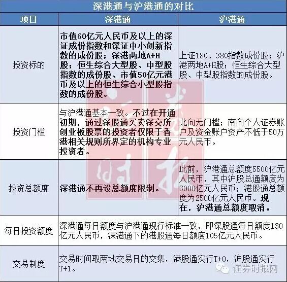8問8答,解讀深港通細則:1問:推出深港通有何積極意義? 答:一是有利于投資者更好地共享兩地經濟發展成果。將進一步擴大內地與香港股票市場互聯互通的投資標的范圍和額度,滿足投資者多樣化的跨境投資以及風險管理需求。 二是有利于促進內地資本市場開放和改革,進一步學習借鑒香港比較成熟的發展經驗。可吸引更多境外長期資金進入A股市場,改善A股市場投資者結構,促進經濟轉型升級。 三是有利于深化內地與香港金融合作。將進一步發揮深港區位優勢,促進內地與香港經濟、金融的有序發展。 四是有利于鞏固和提升香港作為國際金融中心的地位,有利于推動人民幣國際化。 2問:深港通的主要制度安排有哪些? 答:深港通主要制度安排參照滬港通,遵循兩地市場現行的交易結算法律法規和運行模式,主要有以下五方面要點:一是交易結算活動遵守交易結算發生地市場的規定及業務規則。上市公司繼續受上市地上市規則及其他規定的監管。二是中國結算、香港結算采取直連的跨境結算方式,相互成為對方的結算參與人。三是投資范圍限于兩地監管機構和交易所協商確定的股票。四是對跨境投資實行每日額度管理,并進行實時監控。兩地監管機構可根據市場情況對投資額度進行調整。五是港股通投資者僅限于機構投資者及證券賬戶、資金賬戶余額合計不低于50萬元的個人投資者。 3問:深港通標的股有哪些? 答:深股通的股票范圍是市值60億元人民幣及以上的深證成份指數和深證中小創新指數的成份股,以及深圳證券交易所上市的A+H股公司股票。 深港通下的港股通的股票范圍是恒生綜合大型股指數的成份股、恒生綜合中型股指數的成份股、市值50億元港幣及以上的恒生綜合小型股指數的成份股,以及香港聯合交易所上市的A+H股公司股票。 4問:滬港通下的港股通和深港通下的港股通標的范圍有什么不同? 答:滬港通下的港股通標的范圍是恒生綜合大型股指數的成份股、恒生綜合中型股指數的成份股,以及同時在香港聯合交易所、上海證券交易所上市的A+H股公司股票。 深港通下的港股通股票范圍是在現行滬港通下的港股通標的基礎上,新增恒生綜合小型股指數的成份股(選取其中市值50億元港幣及以上的股票),以及同時在香港聯合交易所、深圳證券交易所上市的A+H股公司股票。 5問:滬港通和深港通下的港股通每日額度如何控制,是否相互調劑? 答:滬港通和深港通下的港股通每日額度由滬深證券交易所分別控制,即均為105億元人民幣,互不影響、也不相互調劑。 6問:公募基金能否參與深港通業務? 答:公募基金可以參與深港通業務,相關政策比照公募基金參與滬港通的政策執行。后續,證監會將在有關規定中明確上述安排。 7問:交易型開放式基金(交易所買賣基金)納入互聯互通的投資標的還需具備哪些條件,何時推出? 答:交易型開放式基金(交易所買賣基金)納入互聯互通投資標的范圍涉及兩地三個交易所和有關登記結算機構的系統改造,需要較長的準備時間。未來,證監會將根據深港通運行情況,就交易型開放式基金納入投資標的具體時間、條件與港方進行協商,以保障兩地市場平穩運行。 8問:深港通推出還需要4個月左右準備時間,請問需要開展哪些準備工作? 答:證監會將按照安全有序可控的原則,會同有關各方積極開展以下準備工作:一是會同有關部委,出臺深港通業務的相關規范性文件及配套措施;二是組織兩地交易所以及市場參與者,完善業務流程,做好技術準備;三是與香港證監會就深港通下的跨境監管和執法合作以及投資者保護等進行磋商,對現有的監管合作備忘錄、投資者教育等相關監管合作安排等進行補充完善;四是推動兩地交易所和結算公司簽署互聯互通的合作協議。