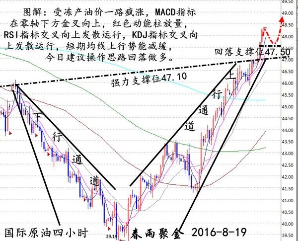 基本面: 周四,得益于美元走軟、美國庫存下降及產油國下月討論凍產的言論,原油期貨連續第六個交易日走高,并進入了牛市區域。但是,市場仍對凍產協議前景存疑。如果這一次凍產協議再次流產,油市反應或比4月多哈會議后更糟糕。 美元走軟、美國原油供應量下降以及主要產油國可能在9月下旬達成凍產協議等因素推動油價上漲。原油期貨價格周四收盤大漲,連續第六個交易日走高,創下了將近兩個月以來的最高收盤價,從而使得原油期貨市場進入了牛市。紐約商品交易所9月交割的WTI美原油期貨價格上漲1.43美元,或3.1%,收于48.22美元/桶。對比本月最低價,WTI期貨周四收盤價已上漲了22%,標志著其已重返牛市區域。倫敦洲際交易所10月份交割的布倫特原油上漲1.04美元,或2.1%,收于50.89美元/桶。 產油國可能凍產的前景同樣推動油價上揚。業內刊物The 7:00’s Report的聯合主編·里奇(Tyler Richey)表示:產油國同意凍產的可能性“仍舊很小”。他還強調,如果這一次它們令市場失望,那么市場反應可能會比4月時糟糕得多,“原因是美國產量的發展趨勢越來越不利于市場”。各大產油國曾在今年春天嘗試達成凍結產量協議,最終未能成功。 現貨原油技術面分析: