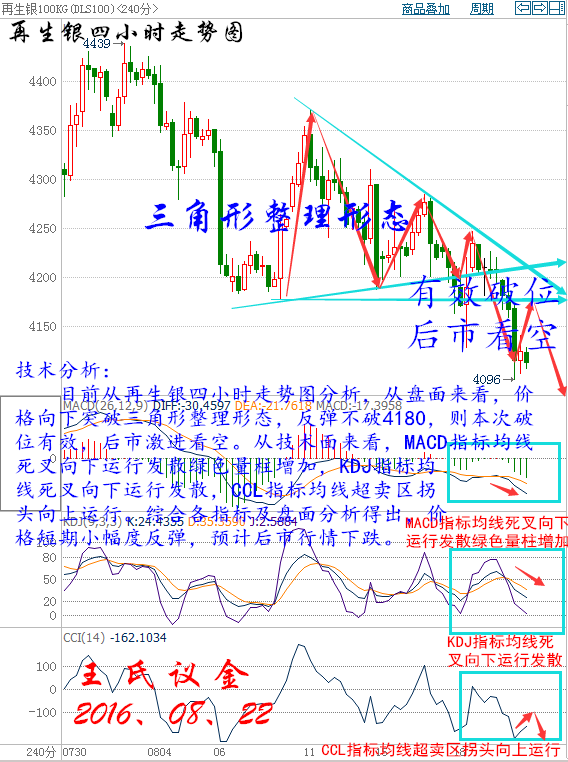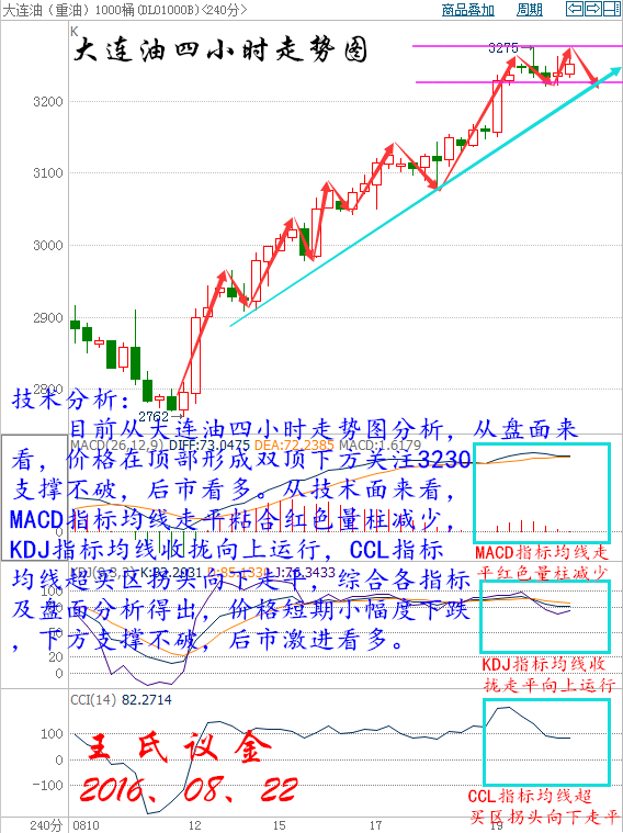 美國(guó)WTI原油9月期貨周五(8月19日)收漲0.30美元,或0.62%,報(bào)48.52美元/桶,本周大漲10.18%。布倫特原油10月期貨周五收跌0.01美元,或0.02%,報(bào)50.88美元/桶,本周勁升8.11%。雖然美國(guó)本周石油活躍鉆井?dāng)?shù)再度大增,同時(shí)投資者鎖定獲利也另油價(jià)承受一定壓力,但限產(chǎn)押注的提振效果依然存在,油價(jià)日內(nèi)基本持平。美國(guó)WTI原油期貨價(jià)格盤中最高觸及48.74美元/桶,布倫特原油期貨價(jià)格盤中最高觸及51.22美元/桶。 基本面利好因素: 美國(guó)能源信息署(EIA)數(shù)據(jù)顯示,截至8月12日當(dāng)周美國(guó)原油庫(kù)存減少250.8萬(wàn)桶,市場(chǎng)預(yù)估為增加52.2萬(wàn)桶。美國(guó)EIA原油庫(kù)存結(jié)束連續(xù)三周的增長(zhǎng)趨勢(shì),并錄得7月8日當(dāng)周以來(lái)最大降幅。美國(guó)上周汽油庫(kù)存減少272.4萬(wàn)桶,市場(chǎng)預(yù)估為減少163.8萬(wàn)桶,創(chuàng)下四周以來(lái)最大降幅。同時(shí)庫(kù)欣庫(kù)存減少72.4萬(wàn)桶,為兩周以來(lái)最大降幅。不過(guò)上周美國(guó)國(guó)內(nèi)原油產(chǎn)量增加15.2萬(wàn)桶至859.7萬(wàn)桶/日,但依然連續(xù)19周維持在900萬(wàn)桶/日關(guān)口下方。此外,美國(guó)精煉油庫(kù)存增加193.9萬(wàn)桶,市場(chǎng)預(yù)估為減少74.2萬(wàn)桶,為九周以來(lái)最大增幅。 沙特能源部長(zhǎng)法利赫(Khalid al-Falih)近期表示,將在下個(gè)月與OPEC和非OPEC產(chǎn)油國(guó)會(huì)面,討論油市問(wèn)題,凍產(chǎn)計(jì)劃再次浮上水面。國(guó)際能源論壇將于9月26日-28日在阿爾及利亞舉行,卡塔爾油長(zhǎng)此前曾表示OPEC成員國(guó)將在論壇會(huì)議間隙展開(kāi)討論。同時(shí)俄羅斯能源部長(zhǎng)諾瓦克(Alexander Novak)周一(8月15日)在接受沙特《中東日?qǐng)?bào)》采訪時(shí)稱,如果有必要,俄羅斯就與石油輸出國(guó)組織(OPEC)合作穩(wěn)定油價(jià)持開(kāi)放態(tài)度,這令市場(chǎng)信心大受鼓舞。 尼日利亞又出現(xiàn)了一個(gè)新的武裝組織,聲稱已炸毀了該國(guó)的重要輸油管,并警告更多的襲擊將陸續(xù)有來(lái)。尼日利亞當(dāng)?shù)丶みM(jìn)分子曾經(jīng)在過(guò)去數(shù)月內(nèi)襲擊原油和能源設(shè)施,這導(dǎo)致產(chǎn)量大減,目前已經(jīng)削減了近70萬(wàn)桶/日,7月出口量仍大幅低于2016年初的每日200萬(wàn)桶水平。此外,由于哈里加港抗議事件,7月份利比亞產(chǎn)量小幅下降,因主要油田Sarir運(yùn)營(yíng)中斷。委內(nèi)瑞拉的供應(yīng)則因現(xiàn)金緊缺承受下行壓力,7月產(chǎn)量也進(jìn)一步下滑,今年產(chǎn)量恐創(chuàng)14年來(lái)最大降幅。 IEA月報(bào)稱,世界各地的煉廠第三季度將加工創(chuàng)紀(jì)錄的原油,在今年第二季度煉廠原油需求創(chuàng)下2009年以來(lái)最大跌幅之后,本季度需求將反彈。IEA同時(shí),石油輸出國(guó)組織(OPEC)成員國(guó)之間互相競(jìng)爭(zhēng),以保障市場(chǎng)份額,在這種情況下,即便沙特、科威特和阿聯(lián)酋原油產(chǎn)量位于歷史新高,但煉廠需求的回升將有助于吸收原油庫(kù)存。整體而言,IEA此次公布的月報(bào)中利多因素大于利空因素,因此對(duì)油價(jià)提供了強(qiáng)勁支撐。 大連油技術(shù)分析: 技術(shù)分析: 目前從大連油日線走勢(shì)圖分析,從盤面來(lái)看,昨日收“小星線”,轉(zhuǎn)勢(shì)或停頓信號(hào)。從技術(shù)面來(lái)看,MACD指標(biāo)均線向上運(yùn)行發(fā)散紅色量柱增加,KDJ指標(biāo)均線收攏向下運(yùn)行,CCL指標(biāo)均線超買區(qū)拐頭向下運(yùn)行走平。綜合各指標(biāo)及盤面分析得出,價(jià)格短期震蕩下行,預(yù)計(jì)后市行情上漲。 操作建議: 今日大連油整體趨勢(shì)以逢低做多為主,以高空為輔。 日內(nèi)阻力:3280/3330 日內(nèi)支撐:3220/3180 激進(jìn)者空單3250~3260區(qū)間內(nèi)可以考慮擇機(jī)入場(chǎng)做空,止損3290上方,目標(biāo)3220/3180。 穩(wěn)健者空單3300~3290區(qū)間內(nèi)可以考慮擇機(jī)入場(chǎng)做空,止損3330上方,目標(biāo)3270/3230。 激進(jìn)者多單3220~3210區(qū)間內(nèi)可以考慮擇機(jī)入場(chǎng)做多,止損3170下方,目標(biāo)3250/3280。 穩(wěn)健者多單3180~3170區(qū)間內(nèi)可以考慮擇機(jī)入場(chǎng)做多,止損3140下方,目標(biāo)3220/3250。 以上操作建議僅供參考、投資有風(fēng)險(xiǎn)、操作需謹(jǐn)慎。 【以上建議出自中匯天融分析部,以實(shí)盤操作建議為準(zhǔn)】 再生銀技術(shù)分析: 操作建議: 今日再生銀整體趨勢(shì)以逢高做空為主,以低多為輔。 日內(nèi)阻力:4140/4170 日內(nèi)支撐:4050/4000 激進(jìn)者空單4110~4120區(qū)間內(nèi)可以考慮擇機(jī)入場(chǎng)做空,止損4150上方,目標(biāo)4080/4050。 穩(wěn)健者空單4140~4150區(qū)間內(nèi)可以考慮擇機(jī)入場(chǎng)做空,止損4180上方,目標(biāo)4100/4050。 穩(wěn)健者多單4050~4060區(qū)間內(nèi)可以考慮擇機(jī)入場(chǎng)做多,止損4020下方,目標(biāo)4090/4120。 激進(jìn)者多單4080~4090區(qū)間內(nèi)可以考慮擇機(jī)入場(chǎng)做多,止損4050下方,目標(biāo)4120/4150。 以上操作建議僅供參考、投資有風(fēng)險(xiǎn)、操作需謹(jǐn)慎。 【以上建議出自中匯天融分析部,以實(shí)盤操作建議為準(zhǔn)】 今日可關(guān)注的財(cái)經(jīng)數(shù)據(jù): 20:30