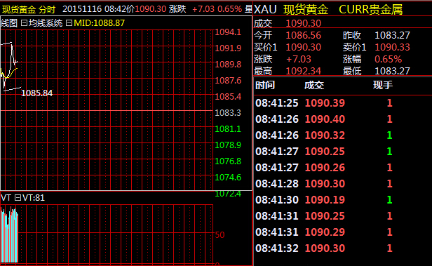 巴黎恐怖襲擊事件導致逾130人罹難后周一(11月16日)匯市冷靜開局,避險資產黃金日元、走強而歐元下滑。 黃金開盤上漲5美元至1187.7美元/盎司。歐元受創稍重,歐元/美元跌0.5%至1.0727,距離今年4月來低點1.0673距離已不遙遠,兌日元跌0.6%至131.25,歐元/英鎊跌至0.7031英鎊下方的3個月低位。美元/日元也走軟至122.32。 黃金跳漲突破1190 |