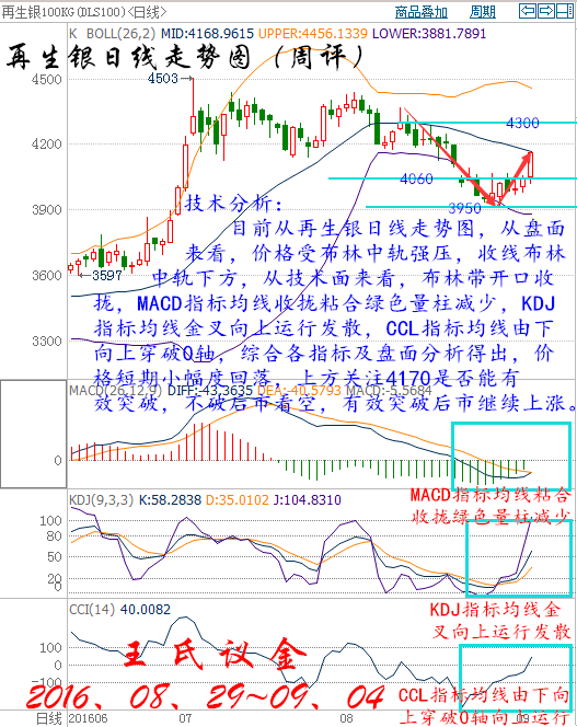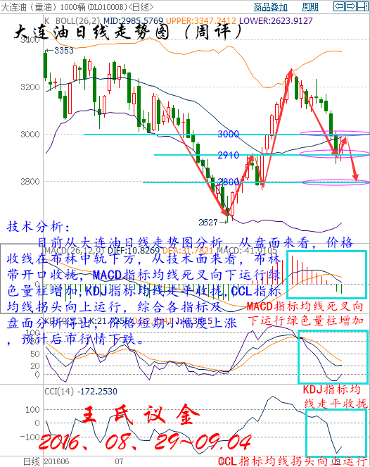 本周行情回顧: 周一(8月29日)亞歐時段油價跌逾1%,美原油10月期貨一度創兩日低點至46.78美元/桶,布倫特原油11月期貨最低觸及49.38美元/桶,因伊拉克產量增加,同時伊朗表示只有在其他石油出口國承認其有權充分恢復市場份額的前提下,才會配合即將進行的凍產談判。油價自觸及8月高峰以來已下挫逾3.5%。油價下跌是中東產量增長所致。8月從伊拉克南部港口的石油出口量日均達320.5萬桶,超過7月的平均水平;7月的石油出口量日均為320.2萬桶。 周二(8月30日)亞歐時段國際油價窄幅震蕩,美原油10月期貨目前交投于47.08美元/桶附近,布倫特原油10月期貨目前交投于49.44美元/桶附近,中國三大油企的產量下降給油價提供了一定的支撐,但產油國凍產的不確定性仍對油價有所拖累,市場在等待更多數據或者消息的刺激。過去一周中石油和中石化都報告今年上半年石油產量下降,中石化表示國內原油產量下滑13%、中石油報告國內產量下降4%;而中海油也表示下半年將減產;分析認為盡管創上市以來最差業績,但減產將令“三桶油”捱過困境以迎接油價的最終復蘇。 周三(8月31日)亞歐時段油價在兩周低位附近窄幅震蕩,美原油10月期貨目前交投于46.18美元/桶,布倫特原油11月期貨目前交投于48.48美元/桶,因美元持于三周高位附近,且API庫存數據顯示美國原油庫存增加,油價依然缺乏上行動力。美元指數周三一度升至96.17,為8月9日以來的最高水平。美元走強,導致石油等以美元計價的大宗商品對于其它幣種的持有者而言變得更加昂貴,而且可能限制需求。 周四(9月1日)亞歐時段國際油價小幅反彈,美原油10月期貨最高觸及45.08美元/桶,布倫特原油11月期貨震蕩于47.21美元/桶附近,日內出爐的中國官方制造業PMI表現較為樂觀,給油價提供了些許支撐,但隔夜美國EIA庫存數據漲幅驚人,且OPEC產量仍有可能繼續刷新紀錄新高,料將限制油價的反彈空間。中國周四公布的官方數據顯示,8月制造業PMI錄得50.4,好于市場預期和前值,預期和前值為49.9。油價小幅反彈還有部分空頭回補的因素存在,隔夜油價大跌逾3%,因美國EIA原油庫存漲幅驚人。 周五(9月2日)亞歐時段國際油價震蕩三周低位附近,美原油10月期貨交投于43.32美元/桶,布倫特原油11月期貨目前交投于45.55美元/桶,本周以來油價已跌逾8%,不過俄羅斯方面終于表態將推動凍產,給油市帶來一絲曙光;但短線來看,油價還將面臨晚間美國非農數據的考驗。過去兩周時間,油市缺乏利好消息的支撐,受庫存增加和疲弱的美國制造業數據及多重利空影響,本周油價可能創下1月中旬以來的最大周線跌幅,目前來看似乎仍存在一度的下跌動能。 大交所大連油技術分析: 技術分析: 目前從大連油四小時走勢圖分析,從盤面來看,價格在底部形成倒錘頭形態見底信號反彈向上運行,上方關注3000壓力位,從技術面來看布林帶開口向下運行,MACD指標均線收攏向上運行綠色量柱減少,KDJ指標均線金叉向上運行,CCL指標均線由下向上到達0軸附近,綜合各指標及盤面分析得出,價格下方關注2910,上方3000有效突破,后市激進看多。 技術分析: 目前從大連油日線走勢圖分析,從盤面來看,價格收線在布林中軌下方,從技術面來看,布林帶開口收攏,MACD指標均線死叉向下運行綠色量柱增加,KDJ指標均線走平收攏,CCL指標均線拐頭向上運行,綜合各指標及盤面分析得出,價格短期小幅度上漲,預計后市行情下跌。 操作建議: 周一大連油(美原油)整體操作趨勢以逢高做空為主,以低多為輔。(美原油兌大連油點位:約66.87) 日內阻力:3000/3045(44.86/45.55) 日內支撐:2910/2870(43.52/42.92) 激進者空單2960-2970區間內可以考慮擇機入場做空,止損3000上方,目標2930/2900。 激進者空單44.26-44.41區間內可以考慮擇機入場做空,止損44.86上方,目標43.82/43.37。 穩健者空單3000-3010區間內可以考慮擇機入場做空,止損3040上方,目標2970/2940。 穩健者空單44.86-45區間內可以考慮擇機入場做空,止損45.46上方,目標44.41/43.97。 激進者多單2930-2940區間內可以考慮擇機入場做多,止損2900下方,目標2970/3000。 激進者多單43.82-43.97區間內可以考慮擇機入場做多,止損43.37下方,目標44.42/44.86。 穩健者多單2900-2980區間內可以考慮擇機入場做多,止損2850下方,目標2940/2970。 穩健者多單43.37-44.57區間內可以考慮擇機入場做多,止損43.62下方,目標43.97/44.42。 以上操作建議僅供參考、投資有風險、操作需謹慎。 【以上建議出自中匯天融分析部,以實盤操作建議為準】 大交所再生銀技術分析: 技術分析: 目前從再生銀四小時走勢圖分析來看,價格突破三角形整理形態,向上運行。從技術面來看,價格處于布林帶開口向上運行,開口成喇叭形態,MACD指標均線向下運行紅色量柱增加,KDJ指標均線向上運行發散,CCL指標均線超買區向上延伸,綜合各指標及盤面分析得出,價格短期小幅度回落,后市繼續上漲。 技術分析: 目前從再生銀日線走勢圖,從盤面來看,價格受布林中軌強壓,收線布林中軌下方,從技術面來看,布林帶開口收攏,MACD指標均線收攏粘合綠色量柱減少,KDJ指標均線金叉向上運行發散,CCL指標均線由下向上穿破0軸,綜合各指標及盤面分析得出,價格短期小幅度回落,上方關注4170是否能有效突破,不破后市看空,有效突破后市繼續上漲。 操作建議: 周一再生銀(現貨白銀)整體操作趨勢以逢高做空為主,以低多為輔。(現貨白銀兌再生銀點位:約213.85) 日內阻力:4190/4230(19.6/19.78) 