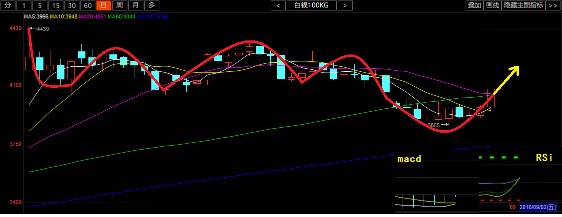 前言:財富得之費盡辛苦,守則日夜擔憂,失則肝腸欲斷。財富不應當是生命的目的,它只是生活的工具。擋不住今天的誘惑,就會失去明天的幸福!所以重點是要擁有掌握財富的能力。 9.5——白銀行情 國際消息面: 美國勞工部(DOL)周五(9月2日)公布的數據顯示美國8月非農就業人數僅僅增加15.1萬人,遠低于市場預期的增加18.0萬人,同時薪資增速放緩,令市場大跌眼鏡。8月非農數據的公布阻礙了美聯儲9月加息的預期,應驗了此前市場傳言的8月“黑色魔咒”。 此前九月加息被炒得沸沸揚揚,但是8月份的非農數據無疑是潑了一盆·涼水,有市場人士指出,8月新增就業人數、薪資增幅、失業率三大指標全面惡化,表明美國8月就業市場狀況不佳,兼之隔夜公布的ISM制造業PMI也表現表現不佳,令美聯儲9月加息顧慮重重,美國聯邦基金利率期貨顯示,9月加息的概率由報告發布前的24%降到18%,12月份加息的概率目前為44%。 所以從國家消息面上看,銀價受加息預計的降低,本周銀價大的趨勢應該是一個回暖的跡象; 從技術盤面上來看: 從日線圖上看,日線昨日收取一根大陽線,附圖指標上來看,目前5日均線上穿10日均線形成金叉,macd綠色能量柱縮量,并有快線上穿慢線形成金叉的趨勢,相對強弱指標RSI也是拐頭向上,K線形態有形成圓弧底上行的趨勢,所以從日線圖上看本周的銀價是呈現一個多頭趨勢,操作上以回撤做多為主; 寄語:我們偶爾一天獲利幾十個點你可以說我們是運氣,長期堅持獲利,把握每波行情,這不是運氣,是分析,是技術。如果你還是存在虧損就趕緊看分析,從無到有我們陪你堅持,舍不得放棄的人,生活只能一直原地踏步。想要走的更遠,與誰同行是關鍵。 |