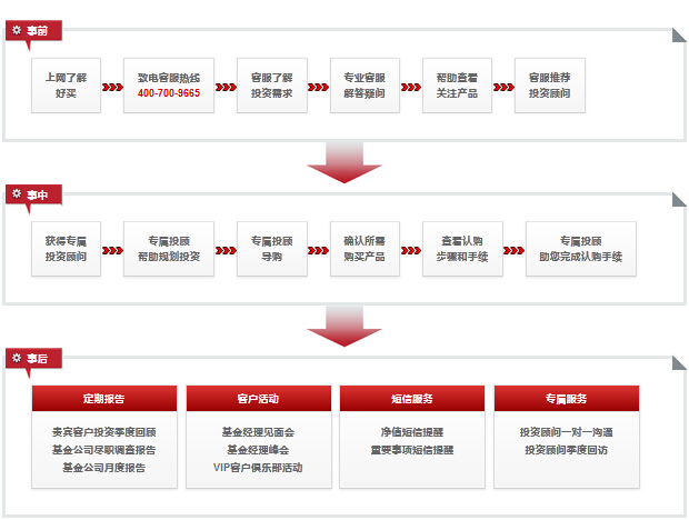 好買提供完整的基金產品線,根據風險和收益特性滿足您不同的投資需求。好買財富目前的產品線覆蓋了公募基金、固定收益類信托、陽光私募基金、FOF母基金、TOT、PE/VC、海外基金等,線上產品超過2000款。 專屬持續的服務