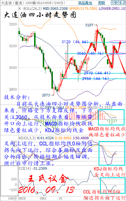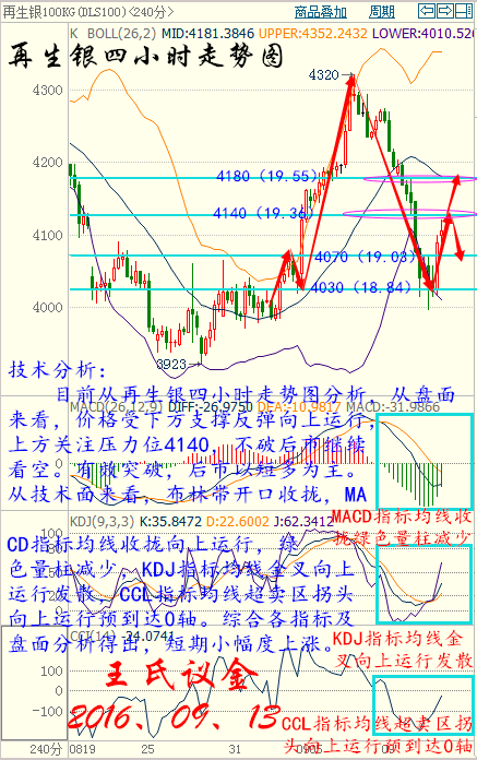 王氏寄語: 總有很多東西無法挽留,比如走遠(yuǎn)的時(shí)光、比如沒有做上的多單、以及漏了的空單。總習(xí)慣為錯(cuò)過找點(diǎn)什么,卻很少為執(zhí)行堅(jiān)持多一些。 昨日收盤: 美國(guó)WTI原油10月期貨周一(9月12日)收漲0.41美元,或0.89%,報(bào)46.29美元/桶。布倫特原油11月期貨周一收漲0.31美元,或0.65%,報(bào)48.32美元/桶。美聯(lián)儲(chǔ)理事布雷納德講話仍偏鴿派,未能給予美元足夠支撐,美元回落抵消了石油鉆井?dāng)?shù)大增的利空影響,為油價(jià)帶來了有效提振。美國(guó)WTI原油期貨價(jià)格盤中最高觸及46.51美元/桶,布倫特原油期貨價(jià)格盤中最高觸及48.62美元/桶。 基本面利好因素: 美聯(lián)儲(chǔ)主席耶倫“親密盟友”、美聯(lián)儲(chǔ)理事布雷納德在講話中表示,美國(guó)經(jīng)濟(jì)持續(xù)進(jìn)步,但聯(lián)儲(chǔ)繼續(xù)保持寬松政策將是明智之舉。她表示,仍對(duì)全球金融市場(chǎng)處境艱難可能會(huì)影響美國(guó)經(jīng)濟(jì)表示擔(dān)憂。美聯(lián)儲(chǔ)理事布雷納德發(fā)表講話之后,美國(guó)利率期貨削減漲幅。聯(lián)儲(chǔ)基金期貨走勢(shì)暗示,交易員預(yù)計(jì)FOMC在9月會(huì)議上升息的幾率為15%,預(yù)計(jì)聯(lián)邦公開市場(chǎng)委員會(huì)在12月會(huì)議上升息的幾率為54.5%。據(jù)金融博客零對(duì)沖稱,美聯(lián)儲(chǔ)理事布雷納德講話期間,美聯(lián)儲(chǔ)9月加息幾率一度從19%降至11%。美元走弱為油價(jià)提供了有效支撐。 美國(guó)能源信息署(EIA)數(shù)據(jù)顯示,截至9月2日當(dāng)周,美國(guó)原油庫(kù)存減少1451.3萬桶,市場(chǎng)預(yù)估為增加22.5萬桶。上周原油庫(kù)存錄得有記錄以來第二大降幅,僅次于1999年時(shí)期1520萬桶的周降幅。美國(guó)上周汽油庫(kù)存減421.1萬桶,市場(chǎng)預(yù)估為減少17.1萬桶,創(chuàng)2015年4月1日以來最大降幅。上周美國(guó)原油日進(jìn)口量減少165.1萬桶,9月2日當(dāng)周原油進(jìn)口降幅為今年最高。不過美國(guó)上周精煉油庫(kù)存增加338.2萬桶,市場(chǎng)預(yù)估為增加68.4萬桶,精煉油庫(kù)存創(chuàng)下7月13日以來最高水平。 中國(guó)海關(guān)發(fā)布的數(shù)據(jù)顯示,作為全球最大的能源使用國(guó),中國(guó)8月共進(jìn)口3285萬噸原油,約777萬桶/日,為4月來最高。而新華社的數(shù)據(jù)顯示,中國(guó)7月商業(yè)原油庫(kù)存下滑環(huán)比5.7%。安迅思中國(guó)(ICIS China)分析師Amy Sun稱,隨著中國(guó)煉廠的煉油高峰季已過,這些煉廠將逐步開始補(bǔ)充庫(kù)存。 石油輸出國(guó)組織(OPEC)和非OPEC產(chǎn)油國(guó)將于9月26日至28日在阿爾及利亞舉行非正式會(huì)談,沙特和俄羅斯周一達(dá)成合作協(xié)議,愿意共同穩(wěn)定原油市場(chǎng),這令原油多頭大受鼓舞。但之后由于沙特能源部長(zhǎng)法利赫(Khalid al-Falih)表示當(dāng)前不需要限制產(chǎn)量,再度令市場(chǎng)對(duì)凍產(chǎn)協(xié)議的懷疑態(tài)度得到加強(qiáng),不過俄羅斯能源部長(zhǎng)諾瓦克(Alexander Novak)表示,如果其他國(guó)家選擇凍結(jié)產(chǎn)量,俄羅斯也愿意考慮配合,甚至不排斥必要的減產(chǎn)行動(dòng)。 大交所現(xiàn)貨原油: 技術(shù)分析: 目前從大連油四小時(shí)走勢(shì)圖分析,從盤面來看,價(jià)格受下方支撐反彈,下方關(guān)注3060。從技術(shù)面來看,布林帶開口向上運(yùn)行,MACD指標(biāo)均線收攏綠色量柱減少,KDJ指標(biāo)均線金叉向上運(yùn)行,CCL指標(biāo)均線0軸附近拐頭向下運(yùn)行,綜合各指標(biāo)及盤面分析得出,價(jià)格短期小幅度回調(diào),預(yù)計(jì)后市行情上漲。 操作建議: 今日大連油(美原油)整體操作趨勢(shì)以逢低做多為主,以高空為輔。(美原油兌大連油點(diǎn)位:約66.87) 日內(nèi)阻力:3120/3160(46.66/47.26) 日內(nèi)支撐:3040/3000(45.46/44.86) 激進(jìn)者空單3120-3110區(qū)間內(nèi)可以考慮擇機(jī)入場(chǎng)做空,止損3150上方,目標(biāo)3090/3060。 激進(jìn)者空單46.66-46.81區(qū)間內(nèi)可以考慮擇機(jī)入場(chǎng)做空,止損47.11上方,目標(biāo)46.21/45.76。 穩(wěn)健者空單3160-3170區(qū)間內(nèi)可以考慮擇機(jī)入場(chǎng)做空,止損3200上方,目標(biāo)3130/3100。 穩(wěn)健者空單47.26-47.41區(qū)間內(nèi)可以考慮擇機(jī)入場(chǎng)做空,止損47.85上方,目標(biāo)46.81/46.36。 激進(jìn)者多單3060-3070區(qū)間內(nèi)可以考慮擇機(jī)入場(chǎng)做多,止損3030下方,目標(biāo)3100/3130。 激進(jìn)者多單45.76-45.91區(qū)間內(nèi)可以考慮擇機(jī)入場(chǎng)做多,止損45.31下方,目標(biāo)46.36/46.81。 穩(wěn)健者多單2990-3000區(qū)間內(nèi)可以考慮擇機(jī)入場(chǎng)做多,止損2960下方,目標(biāo)3040/3080。 穩(wěn)健者多單44.71-44.86區(qū)間內(nèi)可以考慮擇機(jī)入場(chǎng)做多,止損44.26下方,目標(biāo)45.46/46.06。 以上操作建議僅供參考、投資有風(fēng)險(xiǎn)、操作需謹(jǐn)慎。 【以上建議出自中匯天融分析部,以實(shí)盤操作建議為準(zhǔn)】 大交所現(xiàn)貨白銀操作建議: 技術(shù)分析: 目前從再生銀四小時(shí)走勢(shì)圖分析,從盤面來看,價(jià)格受下方支撐反彈向上運(yùn)行,上方關(guān)注壓力位4140,不破后市繼續(xù)看空。有效突破,后市以短多為主。從技術(shù)面來看,布林帶開口收攏,MACD指標(biāo)均線收攏向