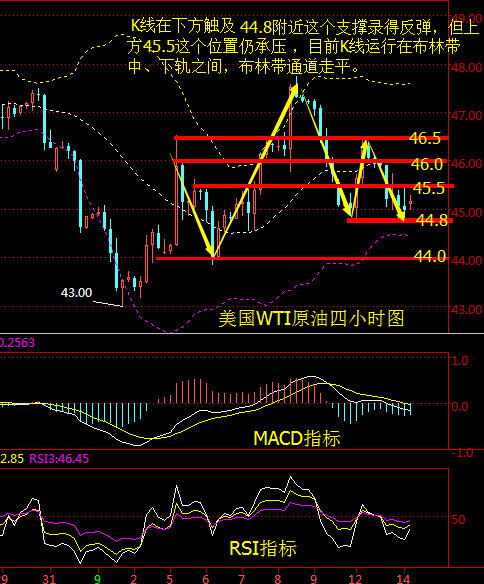 基本面分析: 美國WTI原油10月期貨周二(9月13日)收跌1.39美元,或3%,報44.90美元/桶,盤中最低觸及44.77美元/桶。布倫特原油11月期貨周二收跌1.22美元,或2.52%,報47.10美元/桶,盤中最低觸及46.97美元/桶。 國際能源署(IEA)公布最新的月度報告顯示,全球原油需求增長大幅放緩,再加上庫存和供應激增,意味著油市將保持供應過剩,至少到2017年上半年。IEA此前預測,今年下半年市場將不會出現供應過剩。 報告指出,OPEC上調對非OPEC國家2017年原油供應的預估,因新油田陸續投入運營,且美國頁巖油廠商對低油價的適應能力比預期高,表明明年油市供應過剩程度將更高。同時,今年全球煉廠的產能利用率增長預計創下至少10年來最低,這將抑制原油需求,而經合組織(OECD)國家的石油庫存升至紀錄新高31.11億桶。 另外,日內凌晨美國石油協會(API)公布的數據顯示,上周美國原油庫存增幅不如預期,而汽油庫存錄得大幅下降,不過精煉油庫存錄得8個月來最大增幅。 北京時間22:30,市場將再度迎來EIA原油庫存的沖擊,市場預測值為增加400萬桶。 技術面分析: 美國WTI原油從四小時走勢圖來看,K線在下方觸及44.8附近這個支撐錄得反彈,但上方45.5這個位置仍承壓,目前K線運行在布林帶中、下軌之間,布林帶通道走平。 附圖MACD指標快慢線向下運行并貫穿零軸,綠色動能柱有所縮量;RSI指標三線拐頭向上。 綜合來看,短線上油價有反彈需求,預計亞盤時段油價將小幅走高,操作上建議亞盤時段以短線低位多單為主。 今日美原油操作策略: 1、44.8美元附近做多,目標看向45.5美元附近,止損0.2美元; 2、46美元附近做空,目標看向45.5美元下方,止損0.3美元。 現貨白銀從四小時走勢圖來看,K線觸及18.8附近尋得支撐,若跌破該位置進一步支撐看向18.6附近,目前K線運行在布林帶中、下軌之間,布林帶通道向下運行。 附圖MACD指標快慢線在零軸下方粘合走平,綠色動能柱略微縮量;KD指標死叉向下運行。 綜合來看,白銀價格走勢同樣偏弱,但仍預計亞盤時段有小幅反彈,操作上建議反彈做空。 現貨白銀操作策略: 1、18.8美元附近布局短線多單,目標看向19美元附近,止損0.05美元; 2、19美元上方做空,目標看向18.6美元附近,止損0.1美元。 今日重點關注數據:2016年9月14日 16:30 英國8月失業金申請人數變動 16:30 英國7月三個月ILO失業率 17:00 歐元區7月工業產出月率 22:30 美國9月9日當周EIA原油庫存 本文作者系CFP注冊理財規劃師,多年從事金融領域相關工作,對現貨大宗商品有豐富的實戰經驗。 (以上文章由春雨原創,轉載請注明出處。溫馨提示,投資有風險,入市需謹慎。以上僅代表春雨個人觀點,不作操作依據,據此操作風險自擔) |