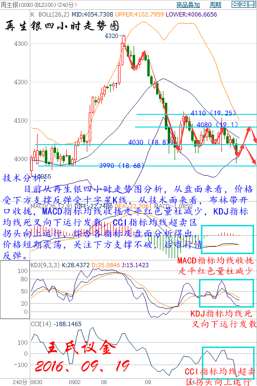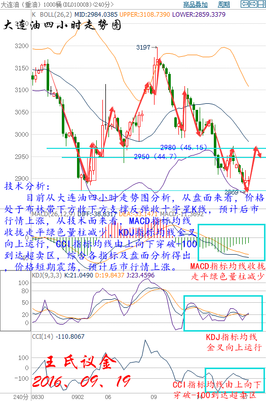 王氏寄語: 假日,總是讓人放松警惕,麻痹大意,把自己以為的平淡附加給還沒開始的行情,中秋之夜人們習慣性的祝福與閑逛,卻有些人手里捏著不愿放的單子,最后吃了一合月餅卻虧了一車月餅錢,意外總是發生在不注意的角落。 上周五收盤: 美國WTI原油10月期貨周五(9月16日)收跌0.88美元,或2.00%,報43.03美元/桶,本周重挫5.91%。布倫特原油11月期貨周五收跌0.82美元,或1.76%,報45.77美元/桶,本周下跌4.37%。美國CPI好于預期美元走強,各國增產傳聞一路打壓油價,而美國本周鉆井數再創7個月來新高更是令多頭信心大受打擊,多重利空下油價承壓下滑。美國WTI原油期貨價格盤中最低觸及42.76美元/桶,布倫特原油期貨價格盤中最低觸及45.49美元/桶。 基本面利多因素: 石油輸出國組織(OPEC)和非OPEC產油國將于9月26日至28日在阿爾及利亞舉行非正式會談,沙特和俄羅斯在G20峰會期間達成合作協議,愿意共同穩定原油市場,這令原油多頭大受鼓舞。但之后由于沙特能源部長法利赫(Khalid al-Falih)表示當前不需要限制產量,再度令市場對凍產協議的懷疑態度得到加強,不過俄羅斯能源部長諾瓦克(Alexander Novak)表示,如果其他國家選擇凍結產量,俄羅斯也愿意考慮配合,甚至不排斥必要的減產行動。 基本面利空因素: 美國油服公司貝克休斯(Baker Hughes)周五(9月16日)公布數據顯示,截至2016年9月16日當周美國石油活躍鉆井數增加2座至416座,過去12周內第11周錄得增加,并再刷7個月來新高。截至9月16日當周美國石油和天然氣活躍鉆井總數減少2座至506座,較去年同期減少336座。 伊朗船運數據顯示,該國8月原油出口超過200萬桶/日,接近制裁前水平。而利比亞國家石油公司(NOC)周四表示,正在恢復一些大型港口的原油出口,并取消了“不可抗力”狀態。這些港口近些天被東部軍事領袖哈夫塔爾(Khalifa Haftar)的武裝奪取。此外,據知情人士周四透露,美國能源巨頭艾克森美孚(Exon Mobil)已經準備輸油管道出口尼日利亞的夸伊博(Qua Iboe)原油,預計最早9月底進行首次裝貨,表明尼日利亞產量也將逐步回升。 美國能源信息署(EIA)數據顯示,截至9月9日當周汽油庫存增加56.7萬桶,市場預估為增加34.3萬桶。美國精煉油庫存增加461.9萬桶,市場預估為增加154.3萬桶。精煉油庫存連續五周錄得增加,增幅創逾8個月最大。同時上周美國原油日進口量增加107.6萬桶,當周原油進口增幅創今年以來最大。而美國上周原油產量結束三連跌環比增加3.5萬桶/日,這對油價而言可能是一個壞消息,自5月以來緩慢回升的美國石油鉆井數正在逐步反饋到美國頁巖油的產能。 國際能源署(IEA)公布最新的月度報告顯示,全球原油需求增長大幅放緩,再加上庫存和供應激增,意味著油市將保持供應過剩,至少到2017年上半年。IEA此前預測,今年下半年市場將不會出現供應過剩。報告指出,OPEC上調對非OPEC國家2017年原油供應的預估,因新油田陸續投入運營,且美國頁巖油廠商對低油價的適應能力比預期高,表明明年油市供應過剩程度將更高。同時,今年全球煉廠的產能利用率增長預計創下至少10年來最低,這將抑制原油需求,而經合組織(OECD)國家的石油庫存升至紀錄新高31.11億桶。 大交所現貨原油技術分析: 技術分析: 目前從大連油四小時走勢圖分析,從盤面來看,價格處于布林帶下方受下方支撐反彈收十字星K線,預計后市行情上漲,從技術面來看,MACD指標均線收攏走平綠色量柱減少,KDJ指標均線金叉向上運行,CCI指標均線由上向下穿破-100到達超賣區,綜合各指標及盤面分析得出,價格短期震蕩,預計后市行情上漲。 操作建議: 今日大連油整體操作趨勢以逢低做多為主,以高空為輔。 日內阻力:2950/2980 日內支撐:2900/2850 激進者空單2950-2940區間內可以考慮擇機入場做空,止損2980上方,目標2900/2870。 穩健者空單2980-2990區間內可以考慮擇機入場做空,止損3020上方,目標2950/2930。 激進者多單2920-2930區間內可以考慮擇機入場做多,止損2890下方,目標2950/2980。 穩健者多單2850-2860區間內可以考慮擇機入場做多,止損2820下方,目標2900/2930。 美原油兌大連油點位:約66.35 美原油操作建議: 今日美原油整體操作趨勢以逢低做多為主,以高空為輔。 日內阻力:44.46/44.91 日內支撐:43.71/42.95 激進者空單44.46-44.31區間內可以考慮擇機入場做空,止損44.91上方,目標43.71/43.26。 穩健者空單44.91-45.06區間內可以考慮擇機入場做空,止損45.52上方,目標44.46/44.16。 激進者多單44.01-44.16區間內可以考慮擇機入場做多,止損43.56下方,目標44.46/44.91。 穩健者多單42.95-43.1區間內可以考慮擇機入場做多,止損42.5下方,目標43.71/44.16。 以上操作建議僅供參考、投資有風險、操作需謹慎。 【以上建議出自中匯天融分析部,以實盤操作建議為準】 大交所現貨白銀技術分析: 技術分析: 目前從再生銀四小時走勢圖分析,從盤面來看,價格受下方支撐反彈收十字星K線,從技術面來看,布林帶開口收攏,MACD指標均線收攏走平紅色量柱減少,KDJ指標均線死叉向下運行發散,CCI指標均線超賣區拐頭向上運行,綜合各指標及盤面分析得出,價格短期震蕩,關注下方支撐有效破位,后市行情繼續看跌。 操作建議: 今日再生銀整體操作趨勢以逢高做空為主,以低多為輔。 日內阻力:4050/4080 日內支撐:3990/3940 激進者空單4030-4020區間內可以考慮擇機入場做空,止損4050上方,目標4000/3970。 穩健者空單4080-4070區間內可以考慮擇機入場做空,止損4110上方,目標405