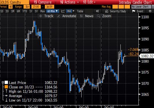 周四(11月19日)現貨金價上揚1%,從六年低位附近反彈,因美聯儲暗示進入升息周期后可能會謹慎行事,美元因此受壓,促使投資者回補黃金空頭頭寸。 美聯儲官員在周三的講話中繼續暗示可能在12月升息,但聯儲還暗示首次升息后,有意緩慢穩步地上調利率。 升息通常會打壓金價,推高美元。升息預期已拖累金價今年累積下跌9%。 現貨金上揚1%,報每盎司1,081.01美元,之前一度攀升1.5%,至1,086.10美元。金價周三曾觸及2010年2月以來最低1,064.85美元。 美國12月期金收漲0.9%,報每盎司1,077.90美元。 商品投資公司Logic Advisors的聯合創始人Bill O"Neill說,“金市今日進行盤整,肯定是因美元走軟所致,這掃除了金市面臨的最大壓力,今天的走勢是典型的傳言時賣出,消息出爐時買入。毫無疑問,不能將今天的表現視為金市觸底的信號! 美國亞特蘭大聯儲主席洛克哈特稱,聯儲在近10年來首次升息后,升息步伐可能是“緩慢的、走走停停的!彼闹v話發表后,金價削減漲幅。 美元兌多數主要貨幣走軟,部分分析師稱,光靠下月升息的預期恐怕無法推升美元。 歐洲和亞洲主要股市攀升,美國股市基本持穩。 現貨銀上揚0.4%,報每盎司14.23美元。現貨鉑金攀升0.5%,報每盎司851.49美元,從周三觸及的七年低位反彈,F貨鈀金上揚0.8%,報每盎司537.60美元,盤中觸及8月底來最低523.35美元。 現貨金價小時圖顯示 |