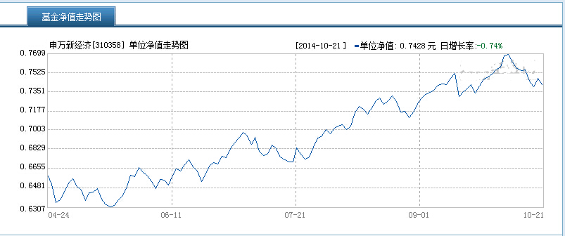 申萬新經(jīng)濟(jì)基金全稱申萬菱信新經(jīng)濟(jì)混合型證券投資基金,成立于2006年,屬于風(fēng)險(xiǎn)較低的混合型基金,目前基金由徐爽管理。下面黃金之家將會(huì)為你詳細(xì)講解這只基金。 一、申萬新經(jīng)濟(jì)基金基本概況基金全稱:申萬菱信新經(jīng)濟(jì)混合型證券投資基金 基金簡(jiǎn)稱:申萬新經(jīng)濟(jì) 基金代碼:310358(前端) 基金類型:混合型 發(fā)行日期:2006年11月03日 成立日期/規(guī)模:2006年12月06日 / 31.061億份 資產(chǎn)規(guī)模:30.32億元(截止至:2014年06月30日) 份額規(guī)模:44.2893億份(截止至:2014年06月30日) 基金管理人:申萬菱信基金 基金托管人:工商銀行 基金經(jīng)理人:徐爽 成立來分紅:每份累計(jì)1.33元(1次) 管理費(fèi)率:1.50%(每年) 托管費(fèi)率:0.25%(每年) 銷售服務(wù)費(fèi)率:---(每年) 最高認(rèn)購費(fèi)率:---(前端) 最高申購費(fèi)率:1.50%(前端) 最高贖回費(fèi)率:0.50%(前端) 業(yè)績(jī)比較基準(zhǔn):滬深300指數(shù)*85%+金融同業(yè)存款利率*15%