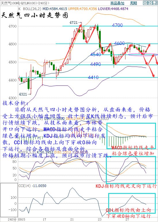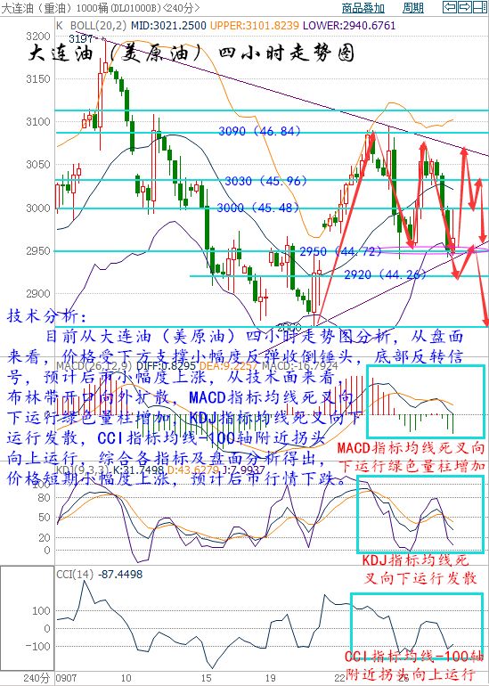 消息面解析: 市場消息顯示,沙特和伊朗在進行協商,他們不像是在此前多哈會議時那樣嚴重分歧。這個象征意義將比在會議上達成一個實際減產數字要更重要。委內瑞拉油長皮諾之前也曾表示,OPEC與非OPEC產油國接近達成產量協議,正致力于在伊朗與沙特之間達成一致立場,而俄羅斯或將考慮支持協議。 受阿爾及利亞能源會議傳來失望消息影響,油價處于下跌勢態,但上周API原油庫存意外錄得下滑,提振油價短線走高;本次庫存為連續四周下滑,另外汽油、精煉油和庫欣原油庫存均錄得下滑。 如果OPEC成員國最終未達成“凍產”協議,原油市場則將失去供求平衡,原油價格則不會在40美元/桶至50美元/桶的區間范圍內正常波動。這就將質疑OPEC組織控制原油市場的能力和威信。因此,即便此次歐佩克產油國的會晤為非正式會議,亦將決定油價的生死。 原油技術分析 大連重油昨日先調整小幅上漲后開始下跌,屢破低點。日K線收取一根大陰線,目前BOLL帶縮口,K線指標運行中軌下方,MACD雙線于零軸下方粘合運行,KDJ指標拐頭向下有粘合的跡象;從四小時來看,K線指標運行在BOLL帶中軌下方,MACD雙線運行于零軸上方,MACD綠色動能縮量快慢線向下運行,RSI、KDJ指標開口拐頭向上縮口趨勢,CCI指標向上延伸。綜合來看,油價還有下滑空間,但不會大幅下跌,操作上日內建議今日以高空為主。 大連油操作策略參考: 1、油價下方觸及低點2940附近不破的話考慮輕倉介入多單進場,止損2930即可,目標看反抽2980 2、油價反彈3000附近布局空單進場,止損3030上,目標看2950可破位持有 白銀技術分析 再生銀操作策略: 1、4100-4090區間內可以考慮擇機入場做空,止損4130上方,目標4070/4030。 2、4030-4020區間內可以考慮擇機入場做多,止損3990下方,目標4070/4100。 【天然氣分析】 天然氣,周初行情確實比較小,基本走區間震蕩,周一日線調整雖然收小陽但是并沒有改變浪線回踩的形態,而昨日波幅算得上最小的一次,昨日日線收陰,早盤K線開盤于日線5、10日均線下方,且5、10均線形成死叉,今天日線給到信號就是堅定看空,上方的壓力就在4670-4700區間內,但是今天是OPEC會議的最后一天,談判難免會對油價、天然氣波動有所影響,投資者還是注意到了點位去把握,操作上建議4670-4700區間空,止損35個點,目標看4540突破看4490 (以上文章由春雨原創,轉載請注明出處。溫馨提示,投資有風險,入市需謹慎。以上僅代表春雨個人觀點,不作操作依據,據此操作風險自擔) |