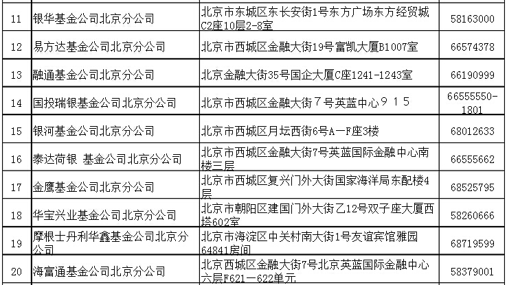 1、以投資風格為主線 判斷基金的投資能力和投資風格,是精選優質基金的主要標準。在實際的操作中,基金的持股風格各不相同,一些基金在投資上采取買入并持有的投資策略,而另外一些基金可能熱衷于頻繁調整。天相投資顧問公司的研究報告顯示,從各組基金特征來看,持股時間較長一組基金在過去一年的平均資產規模為67.33億元,高于持股期限較短基金組12.32億元的平均水平。從過去一年的平均業績排名來看,傾向于長期投資的一組基金表現略占上風。 2、以業績持續性強為主線 對基金業績的評價通常基于歷史業績的參考,不過經常有一些基金去年業績很好,基民興沖沖買進之后,第二年的業績便不好了,這就是業績持續性差。只有通過基金業績的持續性檢驗可以將其中有可能延續過往良好業績的基金挑選出來。 3、對A股市場結構變化為主線 在A股市場目前的結構轉換中,所帶來的波動風險十分明顯。換言之,結構轉換過程中,只有大調整才有大機會。這也給基金經理增加了配置難度。 4、以投資能力為主線 其實以基金公司考察基金是一個比較常見的指標,當時對于不同的市場變化,可需要變通對基金公司考察的部分細節。一般來說,主要考慮基金公司基本實力、投資管理能力、基金公司的穩定性、公司治理結構、風險控制水平等。其中,基金公司基本實力主要考慮管理經驗、產品線完善程度、管理有效規模等因素;投資管理能力主要考慮業績、資產流動性等因素;公司的穩定性主要考慮股權、公司高管、研究團隊、基金經理穩定性因素。 二、北京優質基金公司名錄以下選取了部分基金公司北京分公司名錄,基民可根據自己的投資需求,進一步咨詢和考察。