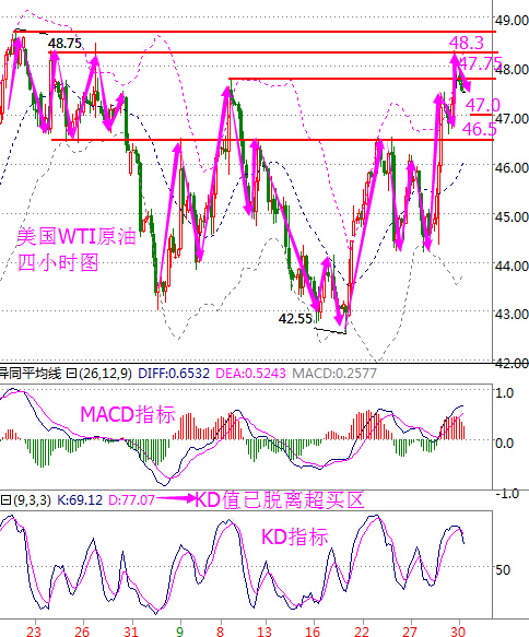 金盤神手:9.30晚評原油白銀天然氣行情走勢分析及操作建議 寫在前面 盛年不重來,一日再難晨,及時宜自勉,歲月不待人,轉(zhuǎn)眼間在金融投資市場拼殺已經(jīng)數(shù)年,回首過去,我們收獲的是喜悅,沉淀的是睿智,感受的是金融市場的步步驚心,展望未來,我們充滿自信,懷抱感恩,經(jīng)歷過風吹雨打必然讓我們更加適應市場的跌宕起伏。今日周線月線雙重收官,預計行情波動比較大,希望大家今晚都能有所收獲,同時也提醒大家晚間謹慎操作,防止套單。 周五(9月30日)在OPEC凍產(chǎn)協(xié)議達成的旁側(cè),金融市場關(guān)注焦點“德意志銀行”。昨夜“德銀”無疑是市場的王者,該行負面消息令市場對歐洲整體銀行業(yè)產(chǎn)生疑問,金融危機擔憂凸顯。恐慌指數(shù)一度飆升26%,黃金白銀等避險資產(chǎn)走高。 近兩日,油市因為OPEC意外出現(xiàn)了減產(chǎn)的意向而情緒高漲。不過始終有部分市場保持謹慎,同時隨著事態(tài)的繼續(xù)發(fā)酵,此次減產(chǎn)意向的走向似乎不太明朗。 首先爭議來自于OPEC內(nèi)部。由于新的投資已在過去幾年提升了伊拉克的產(chǎn)量,該國在此次減產(chǎn)意向中沒有得到豁免,則其產(chǎn)量水平就成了爭議焦點。 原油行情走勢分析 美國WTI原油從四小時走勢圖來看,油價果不其然受獲利回吐等因素回落,但下方關(guān)鍵位置未破,仍不能確定日內(nèi)多空。經(jīng)過早間的下跌,早盤時段策略提到的上方關(guān)鍵位置48.0可適當下移至47.75附近。從指標來看,布林帶通道仍向上,目前開始收口,附圖MACD指標快慢線在零軸上方緩慢拐頭,紅色動能柱縮量;KD指標超買區(qū)死叉向下運行,目前KD值已脫離超買。 晚間做單思路:綜合來看,目前仍未破位,仍需觀望。但早間提到的看空四點中,KD已脫離超買,這點讓油價出現(xiàn)反彈可能。更多技術(shù)面分析搜索關(guān)注金盤神手更多文章。 原油部分參考策略 1、上破47.75美元位置,可在小幅回落后進多,目標看向48.75美元附近; 2、下破47美元附近,可在小幅反彈后進空,目標看向46.5美元附近; 白銀技術(shù)面分析 國際現(xiàn)貨白銀從四小時走勢圖來看,白銀價格近兩個交易日同樣處于19.0~19.2美元區(qū)間內(nèi)窄幅震蕩,目前布林帶中、下軌附近分別形成壓力及支撐。附圖MACD指標快慢線在零軸下方粘合走平偏向上,動能柱消失;KDJ指標三線聚攏走平。 晚間做單思路:綜合來看,白銀價格同樣有反彈需求,但幅度不會太大,操作上建議反彈至高位做空。 現(xiàn)貨白銀部分參考策略 反彈至19.2美元附近做空,目標看向19美元附近,止損0.1美元; 18.9美元上方做多,目標看向19.2美元附近,止損0.1美元。 天然氣方面 行情回顧:我們先來回歸一下昨日天然氣的行情,昨晚經(jīng)歷了跳樓機的行情,先是20:00點跌了大概100個點,隨后EIA數(shù)據(jù)出來后利多短線上漲了80多個點,抹平之前的跌幅,晚間又出大幅回調(diào)最終收盤至4881; 技術(shù)分析:從四小時圖來看,MACD平行運行于零軸下方,綠色能量逐漸放量。目前布林帶三軌平行向前運行,K線運行于布林帶中軌和下軌之間,雖然EIA數(shù)據(jù)的刺激令K線短線上漲突破布林帶中軌,但受中軌壓制,隨即又跌下來,預計天然氣后期還會有一定的跌幅,重點關(guān)注上方4905的壓制情況。 天然氣操作策略 1、4830附近多單進,止損40個點,目標4900,破位持有; 2、4910附近空單進,止損40個點,目標4840,破位看4800; 晚間重點關(guān)注 17:00 歐元區(qū)8月失業(yè)率、9月CPI 20:30 美國8月個人收入環(huán)比、8月個人消費支出環(huán)比 22:00 美國9月密歇根大學消費者信心指數(shù) 01:00 美國9月30日當周貝克休斯總鉆井數(shù)