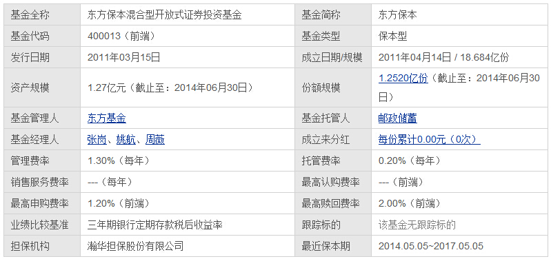 (貨幣基金收益率排名) 一、東方保本基金概況列表內(nèi)容都很詳細,小編就不累贅描述了: