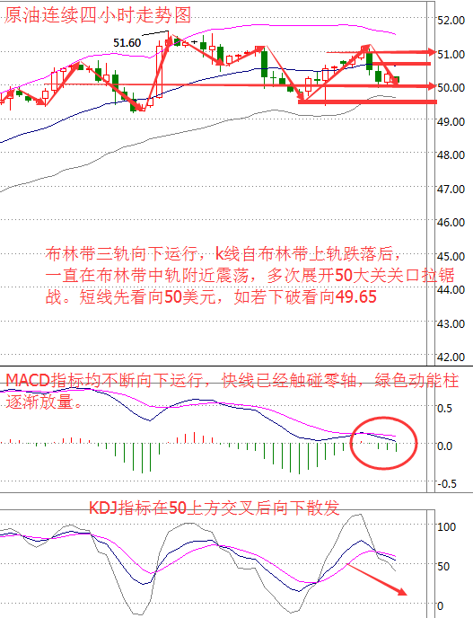 基本面分析: 上周五(10月14日),油價(jià)震蕩收跌,受到美元上漲和鉆井平臺(tái)數(shù)量增加施壓,目前市場(chǎng)仍然關(guān)注OPEC的減產(chǎn)消息。油價(jià)上周五小幅下跌,因美元上漲和美國(guó)活躍鉆機(jī)數(shù)量繼續(xù)上升,和對(duì)石油輸出國(guó)組織(OPEC)進(jìn)一步減產(chǎn)磋商將使油價(jià)保持在50美元以上的預(yù)期互相抵銷(xiāo)。 加之,上周五(10月14日)整體表現(xiàn)良好的美國(guó)數(shù)據(jù)和美聯(lián)儲(chǔ)官員們的升息言論,進(jìn)一步鞏固了年底就升息的預(yù)期,美元指數(shù)本周錄得逾七個(gè)月來(lái)表現(xiàn)最好的一周,重壓包括原油在內(nèi)以美元計(jì)價(jià)的商品。 市場(chǎng)依然密切關(guān)注OPEC減產(chǎn)的消息。目前,許多人預(yù)計(jì)油價(jià)可能在短期內(nèi)持續(xù)上升,受對(duì)OPEC減產(chǎn)提議的預(yù)期帶動(dòng)。OPEC計(jì)劃控制全球供應(yīng)過(guò)剩的情況,促請(qǐng)俄羅斯在內(nèi)的非OPEC主要產(chǎn)油國(guó)加入減產(chǎn)計(jì)劃。 原油技術(shù)面分析: 上周沒(méi)緣由市場(chǎng)延續(xù)了前一周突破三角區(qū)間的拉升過(guò)程,行情回踩49.09的位置后行情開(kāi)始反彈過(guò)程隨后行情觸及51.66的位置后給出周線(xiàn)高點(diǎn),隨后行情在周一這個(gè)區(qū)間內(nèi)震蕩回落,最終周線(xiàn)收線(xiàn)在了50.2的位置后,周線(xiàn)以一根上影線(xiàn)很長(zhǎng)的射擊之星周線(xiàn)收尾,而這樣的形態(tài)收尾后,本周行情逢高先空,而上方壓力線(xiàn)可以看作是周線(xiàn)級(jí)別頭肩底的頸線(xiàn),在本輪行情回踩之前突破的三角區(qū)間上軌后行情將沖擊頭肩底形態(tài)頸線(xiàn)關(guān)口,所以本周的操作思路先空后低多。 美國(guó)WIT原油4小時(shí)圖,布林帶三軌均不斷拐頭向下,k線(xiàn)自布林帶上軌跌落后,一直在布林帶中軌震蕩,k線(xiàn)價(jià)格前期破位上行受上方51美元壓制后不斷向下,目前k線(xiàn)價(jià)格欲探50美元下方。MACD指標(biāo)不斷向下運(yùn)行,綠色動(dòng)能柱逐漸放量,KDJ指標(biāo)拐頭向下。 綜合而言,原油價(jià)格上行動(dòng)能不足,50美元將成為重要支撐點(diǎn),如下破50美元,原油價(jià)格將持續(xù)震蕩下行。若受50美元支撐,原油價(jià)格將在50美元附近震蕩前行,操作上建議高空為主。 操作建議:高空為主 50美元附近做空,止損50.5美元,目標(biāo)49.8—49.6美元附近 白銀技術(shù)面分析: 現(xiàn)貨白銀從四小時(shí)走勢(shì)圖來(lái)看,白銀價(jià)格比起金價(jià)區(qū)間震蕩的更加明顯,布林帶通道逐漸收攏,震蕩幅度也在逐漸變小。附圖MACD指標(biāo)快慢線(xiàn)靠近零軸下方走平,紅色動(dòng)能柱來(lái)回縮、放量。 綜合來(lái)看,白銀價(jià)格上下動(dòng)能均不足,操作上同樣建議在區(qū)間內(nèi)高拋低吸。 現(xiàn)貨白銀操作建議: 17.3~17.4美元為做多區(qū)間,上方17.6~17.68為做空區(qū)間。均帶止損0.1美元,目標(biāo)看向0.2美元以上。 今日重點(diǎn)關(guān)注: 17:00 歐元區(qū)9月CPI月率 次日凌晨00:15 美聯(lián)儲(chǔ)副主席費(fèi)希爾將在紐約經(jīng)濟(jì)俱樂(lè)部發(fā)表演說(shuō) (以上文章由春雨原創(chuàng),轉(zhuǎn)載請(qǐng)注明出處。溫馨提示,投資有風(fēng)險(xiǎn),入市需謹(jǐn)慎。以上僅代表春雨個(gè)人觀點(diǎn),不作操作依據(jù),據(jù)此操作風(fēng)險(xiǎn)自擔(dān)) |