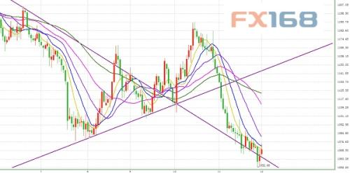 周二(12月1日)日內(nèi)現(xiàn)貨黃金延續(xù)了反彈形態(tài),盤中一度沖高至1074.81美元,不過亞市午盤過后價格回落,至北美盤中于1170下方溫和震蕩。 日線圖上,現(xiàn)貨黃金隔夜上漲7.06美元,形成小陽線。價格反彈有受阻短期均線組跡象,但34、55日均線仍與價格有很大差距,為反彈提供了少量空間。指標(biāo)上看,MACD動能柱裝為紅色,雙線低位粘合;KD指標(biāo)雙線自超賣區(qū)進(jìn)一步回升;RSI錄得35.24,拐頭向上。 我們認(rèn)為,黃金技術(shù)面有反彈需要,基本面利空消息已經(jīng)基本消化,整體趨勢仍處下行,更長期的行情需要等候歐洲央行以及美聯(lián)儲的最新動態(tài)。黃金下行的初步目標(biāo)位于1063.00,進(jìn)一步目標(biāo)位于1052.60,更關(guān)鍵目標(biāo)位于1044.20美元大關(guān); 黃金上行的初步阻力位于1066.66,進(jìn)一步阻力位于1070.00,更關(guān)鍵阻力位于1075.00美元/盎司;黃金上行的初步阻力位于1075.00整數(shù)關(guān),進(jìn)一步阻力位于1081.14,更關(guān)鍵阻力位于1088.09美元/盎司。 (現(xiàn)貨黃金日圖,來源:FX168財經(jīng)網(wǎng)) 長期趨勢:看跌 短期趨勢:謹(jǐn)慎看跌 關(guān)鍵阻力:1075.00,1081.14,1088.09 關(guān)鍵支撐:1063.00,1052.60,1044.20 北京時間21:55,現(xiàn)貨黃金報1068.40美元/盎司。 |