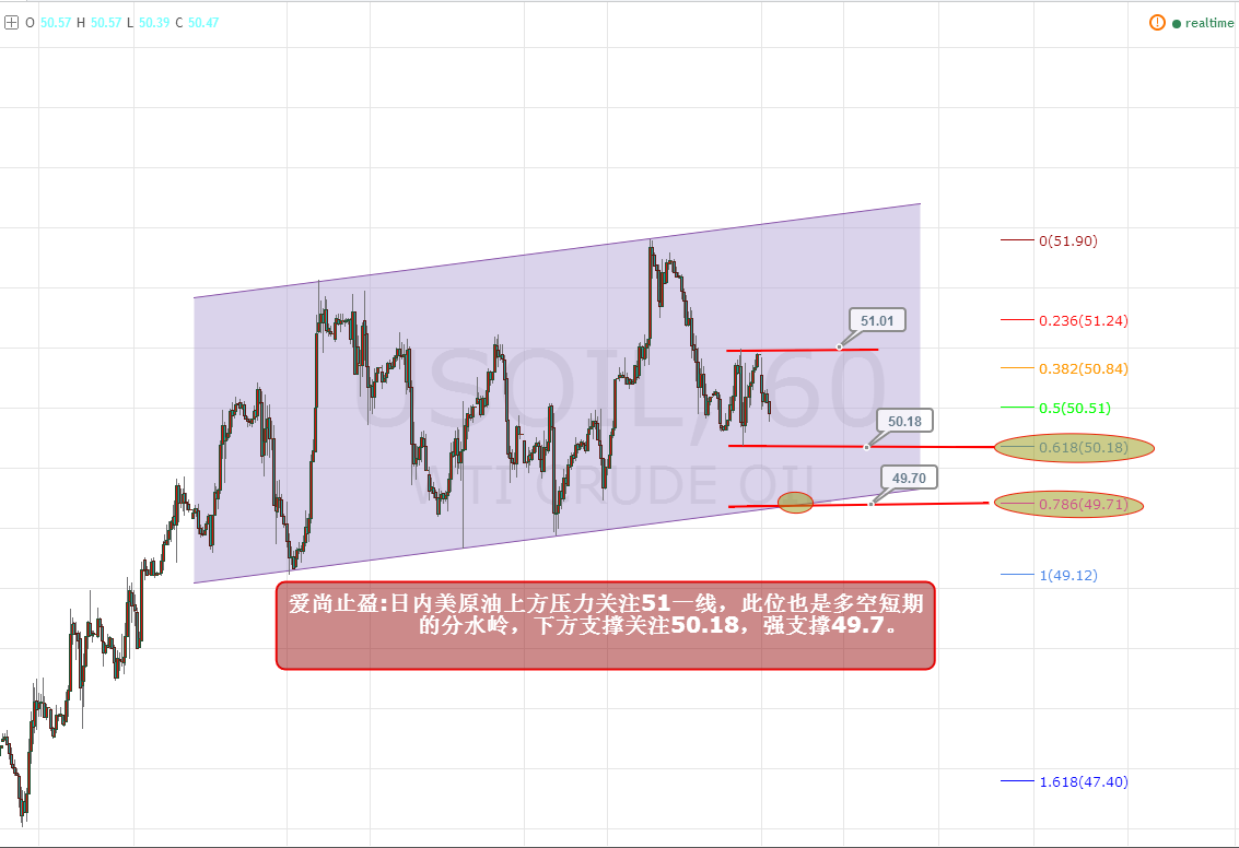 黃金:周五黃金在兩次測試前期高點1268附近后走回落,彰顯出此位壓力的有效性,1268也是日內黃金多頭的分水嶺,而目前下方支撐位于1260一線,此位,是前期多頭拉升的起漲點,對于今日空頭而言,也是較為重要的防守點,日內黃金只要不跌破此位,將有望走上行,若跌破1260,金價將再度轉為弱勢。 原油:周五原油同樣是兩次測試51一線壓力附近后走回落,同樣彰顯出此位壓力的有效性,日內,原油若破位51,將有望繼續走上行,原油目前下方支撐位于此輪反彈回撤的0.618支撐,此位,也是周五晚間的低點50.18一線,下方強支撐位于此輪反彈回撤的0.786支撐,此位,也剛好對應原油小時圖上升通道的下軌支撐49.7一線,此位,也是短期多頭防守的重要支撐。 操作策略: 黃金1262多,止損1258,目標看1268-72 原油50.2多,止損49.6,目標看50.9-51.4 |