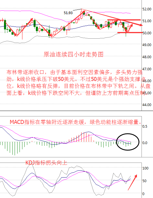基本面分析: 本周一(10月23日),伊拉克油長(zhǎng)盧艾比稱(chēng),希望允許該國(guó)不參與OPEC減產(chǎn)行動(dòng),因其需要更多資金來(lái)抗擊伊斯蘭國(guó)武裝份子。美油盤(pán)中跌穿50美元,為10月18日來(lái)首次,觸及日低49.62美元,因油價(jià)在過(guò)去一個(gè)月上漲逾5美元,或約13%后,部分市場(chǎng)人士鎖定獲利。 油價(jià)過(guò)去一個(gè)月大漲之后,本身就面臨調(diào)整的風(fēng)險(xiǎn),而伊拉克表態(tài)令調(diào)整的時(shí)間更快到來(lái)。但鑒于油市基本面在改善,油價(jià)下跌的空間將受到限制。 隨著市場(chǎng)對(duì)OPEC 11月會(huì)議的質(zhì)疑聲上升,預(yù)計(jì)油價(jià)未來(lái)一段時(shí)間將繼續(xù)調(diào)整,不過(guò)下跌的空間將受到限制。因隨著全球石油需求的回升且非OPEC產(chǎn)量下滑,全球石油市場(chǎng)的供應(yīng)過(guò)剩將逐步緩解。 原油技術(shù)面分析: 美國(guó)WTI原油從四小時(shí)走勢(shì)圖來(lái)看,布林帶逐漸收口,昨日伊拉克反水油價(jià)自10月19日來(lái)首次下破50美元。同時(shí),k線(xiàn)價(jià)格在50美元附近受到支撐,價(jià)格略有反彈。目前k線(xiàn)價(jià)格在布林帶中下軌之間,交投于50.57美元附近。附圖MACD指標(biāo)在零軸附近逐漸走緩,綠色動(dòng)能柱逐漸縮量。kdj指標(biāo)拐頭向上。 綜合而言,油價(jià)后市下行空間不大,但謹(jǐn)防前期高點(diǎn)壓制,預(yù)計(jì)油價(jià)后市將震蕩上行。操作上建議回落做多為主。 美原油操作建議:回落做多。 原油回調(diào)至50.00附近做多,第一目標(biāo)看50.80美元,第二目標(biāo)51.00美元。 大連再生資源大連油操作建議: 大連油3360~3370區(qū)間做多,目標(biāo)先看3405~3315,突破看3430. 白銀技術(shù)面分析: 現(xiàn)貨白銀從四小時(shí)走勢(shì)圖來(lái)看,銀價(jià)昨日大漲小幅漲破17.8這個(gè)阻力,上方靠近17.9美元回落,下方觸及17.5美元尋得支撐。從指標(biāo)來(lái)看,布林帶通道走平,附圖MACD指標(biāo)靠近零軸基本走平,紅色動(dòng)能柱縮量。 現(xiàn)貨白銀市場(chǎng)昨日先回踩給出17.43的位置后行情開(kāi)始拉升過(guò)程,盤(pán)中最高觸及到了17.87的位置后行情遇阻開(kāi)始回落,最終日線(xiàn)收線(xiàn)在了17.55的位置后行情以一根上影線(xiàn)極長(zhǎng)的射擊之星收尾,而這樣的形態(tài)收尾后,今日的行情回踩需空,點(diǎn)位上 今日回踩17.65-17.7空,止損17.85下方目標(biāo)看17.4和17.25,跌破看前低17.08. 大連再生資源再生銀操作建議: 再生銀3795~3805區(qū)間做空,止損30個(gè)點(diǎn),目標(biāo)看3745~3710,跌破看前低。 今日重點(diǎn)關(guān)注: 16:00 德國(guó)10月IFO商業(yè)景氣指數(shù) 22:00 美國(guó)10月諮商會(huì)消費(fèi)者信心指數(shù) 22:35 英國(guó)央行行長(zhǎng)卡尼將在上議院經(jīng)濟(jì)事務(wù)委員會(huì)接受質(zhì)詢(xún) 23:30 歐央行行長(zhǎng)德拉吉講話(huà) 次日凌晨04:30 美國(guó)10月21日當(dāng)周API原油庫(kù)存(萬(wàn)) (以上文章由春雨聚金原創(chuàng),轉(zhuǎn)載請(qǐng)注明出處。溫馨提示,投資有風(fēng)險(xiǎn),入市需謹(jǐn)慎。以上僅代表春雨個(gè)人觀(guān)點(diǎn),不作操作依據(jù),據(jù)此操作風(fēng)險(xiǎn)自擔(dān)) |