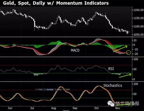 國際金價周二走低,因股市上漲,加上預期歐洲進一步出臺刺激措施,均降低了投資者對黃金這種保值金屬的興趣。 紐約商品交易所Comex分部明年二月交割的黃金期貨下跌1.80美元,至1,063.50美元/盎司,跌幅0.2%。 對歐洲央行將很快擴大刺激措施的預期加大了對黃金的壓力。歐洲央行與美聯儲之間貨幣政策的相背而馳預計將推高美元,令以美元計價的黃金對外國買家來說更貴。美國股市上漲周二也對金價造成壓力。 美聯儲官員和黃金交易員現在都在關注美國經濟數據,特別是將于本周五公布的11月美國非農就業報告,希望從中尋求美國經濟健康狀況的跡象。 看空過頭了 等不及看到美國本月加息,對沖基金的黃金看跌頭寸已經達到創紀錄水平。截至11月24日當周,對沖基金的黃金期貨與期權凈空頭頭寸為14,655手合約,是2006年有官方記錄以來的最高水平。 黃金ETP投資者的持倉截至本周一也連續8天減少,降至2009年以來最低水平。 黃金ETP的價值今年揮發了近100億美元。 隨著美國經濟復蘇加力,美元匯率走強,金價今年下跌了大約10%。 黃金已超賣 金價下跌勢頭趨緩,動量指標出現看漲背離,CFTC倉位極度超賣,期權市場開始出現看漲押注。 技術動量指標預示觸底反彈。看漲背離(指標攀升但金價下跌):MACD差離、相對強弱指標、隨機指標 MACD今日出現看漲交叉。技術指標在7月類似水平附近觸底,當時金價在1075附近企穩,到10月份反彈至1192。 CFTC倉位極端,暗示可能出現讓很多人失策的上漲行情。凈多頭非商業倉位2.02萬,為2003年以來最低。 2013年以來的低點都伴隨著金價盤整上漲,期權風險逆轉顯示市場開始看漲。 技術位: 阻力位:11月20日高點1088,9月低點和11月16日高點1097/8,10月2日低點1105 支撐位:11月18日低點1064,11月27日低點1053,2010年2月低點1045。 |
