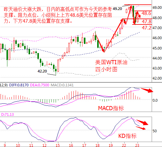 基本面分析: 周二(11月22日)美國WTI原油1月期貨收跌0.21美元,或0.44%,報48.03美元/桶,盤中最低觸及47.17美元/桶,最高49.2美元/桶。布倫特原油1月期貨周二收漲0.22美元,或0.45%,報49.12美元/桶。參加OPEC會議的官員試圖在11月30日的正式會議前敲定減產協議的細節。 雖然OPEC技術會議未能就伊朗問題達成一致,但委員會稱已經“成功”完成工作,而伊拉克駐OPEC代表也對技術會議表示同意和愉快,認為對OPEC成員國應采取什么措施已經達成共識,這為原油價格帶來一定支撐。 不過伊朗和伊拉克的態度依然不算明朗,需要在下周會議上進一步討論。伊朗和伊拉克的態度令11月30日石油部長會議存在變數,投資者擔心如果最終無法達成一致,8年來的首個限產協議恐將不了了之。 另外,早間API公布的原油庫存報告顯示,截至11月18日當周,美國原油庫存減少130萬桶,至4.884億桶,分析師預估為增加67.1萬桶。庫欣原油庫存減少14萬桶。汽油庫存增加270萬桶,分析師預估為增加64.3萬桶。上周精煉油庫存減少35.3萬桶,分析師預估減少35.7萬桶。由于API數據好壞參半,油價在結算后交易中并未出現過大波動。 原油技術面分析: 美國WTI原油從四小時走勢圖來看,昨天油價大漲大跌,日內的高低點可作為今天的參考支撐、阻力位,今天油價是上探50美元還是下探46美元需要看這兩個點的支撐及阻力,小級別上48.6美元存在阻力,下方47.8美元位置存在支撐。 從指標來看,K線此前持續處于布林帶上軌上方,而后出現大幅度的回調,目前K線已回歸正軌,附圖MACD指標快慢線粘合走平偏下行,紅色動能柱縮量;KD指標向下運行。 綜合來看,油價目前存在下行風險,不過預計亞盤時段將窄幅震蕩,亞盤時段操作上建議在小區間內高拋低吸。 美原油今日操作建議:區間高拋低吸 今日的行情回踩48.7空,止損49.3下方目標看48和47.2,跌破的話看46.4. 原油回落47.50美元附近做多,止損47美元,目標看48-48.50美元附近; 解套思路: 在外,幾年風風雨雨,只為一朝返家,盤前,數日等待守候,只為一次破位。深夜人靜、獨自在那寂靜的高速路上奔馳,只為見心里的掛念,盤前冷寞,一人守在閃爍的K線前來回切換著,只為手里可憐的單子。你站在橋上看風景,看風景的人在樓上看你,明月裝飾了誰的窗子,誰又裝飾了誰的夢? 因市場消化石油輸出國組織(OPEC)可能帶頭減產的消息,使得油價沖高回落。這個時候相信套單的人肯定不少吧,都以為回落做多就可以賺錢了,但事實并不是這樣的,在這樣的行情中我相信套單的人肯定不少吧。套47美元附近的空單本人建議等回落點小損出局,因為現在大趨勢還是看多的,下方的支撐位強勁,出局時候反手做多,持有至48美元附近出局這樣可挽回之前空單的損失。還有一種是套48.50美元上方的多單本人建議繼續持有,行情的趨勢還在依舊是看多的,等行情回落支撐位附近加倉多單,持有至49美元上方可獲利出局。最后就是鎖單,鎖單有兩種解套方案,第一種就是等行情回調下來之后出掉空單加倉多單,第二種就是反彈上去出掉多單加倉空單,這兩種方案都可以解鎖單的。因為不知套單點位、倉位風險等具體套單情況咨詢筆者解套,也許在做原油的你們不知道國際原油怎么換算成你們所需點位,怎么看自己平臺所報價的合約,那么咨詢筆者即可,在此本人還是建議以后做單不要抗單,倉位不要過重,避免下次再套,不是每次都是可以成功解套,不是每次都順心如意,每一次的做單是應該有計劃,有風控,有后續方案的。 白銀技術面分析: 現貨白銀從四小時走勢圖來看,白銀同樣的沖高回落,不過其較大幅度的突破了此前的阻力位,目前阻力位上移至16.9~17美元區間,下方兩次試探16.5美元,需重點關注,小級別上布林帶中軌上方16.5美元附近存在阻力。 從指標來看,白銀價格目前運行于布林帶中軌下方,附圖KD指標向下運行,但目前有所走緩。 綜合來看,白銀空頭較為強勢,但技術面有所走緩,預計早間白銀價格將出現小幅反彈之后回落,操作上建議反彈做空為主。 現貨白銀操作建議: 16.75美元附近做空,目標看向16.5美元附近,止損在16.8美元上方; 16.5美元上方做多,目標看向16.7美元左右,止損0.1美元。 今日重點關注數據: 17:00 歐元區11月PMI初值 21:30 美國截至11月12日當周續請失業金人數(萬) 22:45 美國11月Markit制造業PMI初值 23:00 美國10月季調后新屋銷售年化總數(萬戶) 23:30 美國截至11月18日當周EIA原油庫存變動(萬桶) 。ㄒ陨衔恼掠纱河昃劢鹪瓌,轉載請注明出處。溫馨提示,投資有風險,入市需謹慎。以上僅代表春雨個人觀點,不作操作依據,據此操作風險自擔) |