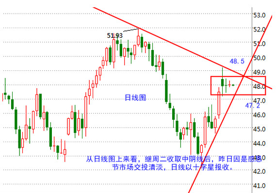 基本面分析: 美國(guó)WTI原油1月期貨周四(11月24日)上漲0.02美元,報(bào)47.98美元/桶,日內(nèi)基本走平,盤中最大波幅不到0.5美元。布倫特原油1月期貨周四上漲0.05美元,報(bào)49.00美元/桶。因適逢美國(guó)感恩節(jié)假期,美國(guó)市場(chǎng)休市一日令市場(chǎng)交投清淡。 據(jù)外媒周四報(bào)道稱,沙特將在下周的OPEC政策會(huì)議上呼吁并支持達(dá)成減幅最大的協(xié)議,沙特表示將說服非OPEC產(chǎn)油國(guó)共同努力,從而將全球原油供應(yīng)減少2%。 不過有分析師指出,沙特的野心很大,但預(yù)計(jì)會(huì)遭受強(qiáng)大阻力,首先伊朗和伊拉克一致就是限產(chǎn)協(xié)議實(shí)施的重要阻礙,而該兩國(guó)在下周會(huì)議上的表態(tài)還存在很大不確定性。另一方面,俄羅斯能源部長(zhǎng)反復(fù)重申,該國(guó)不會(huì)實(shí)施減產(chǎn),只愿意凍結(jié)產(chǎn)量。 日內(nèi)原油市場(chǎng)消息面較為清淡,投資者首先應(yīng)重點(diǎn)關(guān)注產(chǎn)油國(guó)方面可能發(fā)表有關(guān)凍產(chǎn)的講話,另外則需要關(guān)注技術(shù)面。 現(xiàn)貨原油技術(shù)分析: 在隔日比較清淡的行情里油價(jià)收取一顆陽(yáng)十字星,一整天的窄幅震蕩始終在48美元上下?lián)u擺,多空互相交織著,從日線技術(shù)圖上看,布林帶呈縮口運(yùn)行,MA5/MA10均線于45.3美元附近交金叉向上運(yùn)行,附圖MACD指標(biāo)于0軸下方交金叉運(yùn)行,紅色動(dòng)能放量呈中性,受兩大數(shù)據(jù)以及伊拉克減產(chǎn)的提振油價(jià)在中軌位置獲得良好支撐; 從四小時(shí)圖上看油價(jià)連續(xù)收取陰十字星,且布林帶呈縮口運(yùn)行,MA5/MA10均線交金叉運(yùn)行,同時(shí)附圖MACD指標(biāo)于0軸上方交死叉,綠色動(dòng)能放量呈弱性,說明油價(jià)上行空間有限依然有回落的風(fēng)險(xiǎn);綜合來看油價(jià)在這種清淡行情之中,多空互相禮讓,關(guān)鍵還是看消息面的刺激才能打開這種趨勢(shì),隔日春雨聚金就說過短線來看油價(jià)會(huì)陷入?yún)^(qū)間震蕩格局,對(duì)于今日操作思路春雨聚金看好低多為主,高空為輔。 短期依舊關(guān)注上方49.0美元關(guān)口的壓力位,若突破此位置,未來油價(jià)可能會(huì)進(jìn)一步試探上方50美元大關(guān),若下方47.0美元的跌破,后續(xù)油價(jià)大幅下跌的風(fēng)險(xiǎn)將會(huì)加大。同時(shí),今日周線收官,若行情受消息面的刺激必然會(huì)暴漲或暴跌,各位請(qǐng)做好風(fēng)險(xiǎn)控制的必要。 現(xiàn)貨原油操作建議: 1、回落47.5美元附近做多,止損0.4美元,目標(biāo)48.5美元附近; 2、反彈48.5美元附近做空,止損0.4美元,目標(biāo)47.5美元附近; 現(xiàn)貨白銀技術(shù)分析: 受美國(guó)感恩節(jié)節(jié)假日的影響,美盤提前休市,白銀依舊還是維持區(qū)間震蕩整理,從昨天的收線就可以清楚看出白銀周五可能會(huì)出現(xiàn)一波小反彈,從小時(shí)圖來看,目前白銀的價(jià)格也是位于布林中軌的上方運(yùn)行,但是大趨勢(shì)依舊還是看空思路,再加上昨天晚間小時(shí)線也是連續(xù)收陰,價(jià)格也是不斷的新低,反彈只是曇花一現(xiàn),做空依舊是主思路 從四小時(shí)來看,目前的價(jià)格也是位于MA5與MA10日均線附近震蕩徘徊,也就是行情出方向的時(shí)候,再加上短期均線MA5明顯下穿MA10日均線,位于0軸的下方死叉放量,配合附圖指標(biāo)MACD死叉持續(xù)放量,技術(shù)面依舊還是偏空的思路,綜合近期的走勢(shì)來看,春雨聚金認(rèn)為今日上方重點(diǎn)關(guān)注16.5-17.0的阻力位,下方關(guān)注4小時(shí)前期低點(diǎn)16.151的底部支撐,操作方面亞盤可以布局短線多單,博取小反彈,當(dāng)然大趨勢(shì)依舊看空。 現(xiàn)貨白銀操作建議: 1、回落16.1-16.2美元附近做多,止損0.2美元,目標(biāo)16.5美元附近; 2、反彈16.5-16.6美元附近做空,止損0.2美元,目標(biāo)16.0美元附近; (以上文章由春雨聚金原創(chuàng),轉(zhuǎn)載請(qǐng)注明出處。溫馨提示,投資有風(fēng)險(xiǎn),入市需謹(jǐn)慎。以上僅代表春雨個(gè)人觀點(diǎn),不作操作依據(jù),據(jù)此操作風(fēng)險(xiǎn)自擔(dān)) 本文作者系CFP注冊(cè)理財(cái)規(guī)劃師,多年從事金融領(lǐng)域相關(guān)工作,對(duì)現(xiàn)貨大宗商品有豐富的實(shí)戰(zhàn)經(jīng)驗(yàn)。 |
