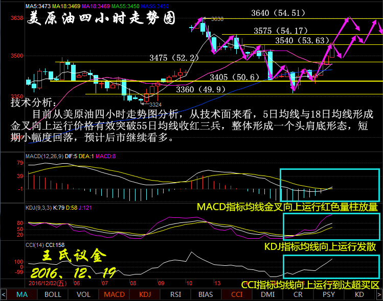 王氏議金:12、19美聯(lián)儲(chǔ)加息猶若寡斷,現(xiàn)貨白銀原油多空分明 國(guó)際基本面: 周一(12月19日)原油盤初,油價(jià)小幅上漲。美油交投于53.30美元/桶附近,漲幅約為0.77%。參與減產(chǎn)協(xié)議的各大產(chǎn)油國(guó)已經(jīng)開始安排減產(chǎn)的相關(guān)事宜,提振市場(chǎng)的樂觀情緒,助漲油價(jià)。但是,仍有市場(chǎng)分析人士擔(dān)憂,OPEC近期通過減產(chǎn)支持油價(jià)的決定可能打開美國(guó)頁巖油泛濫的閘門。投資者需密切關(guān)注美國(guó)原油產(chǎn)量及原油庫(kù)存方面的數(shù)據(jù),市場(chǎng)交投仍需謹(jǐn)慎。 俄羅斯能源部長(zhǎng)諾瓦克上周五(12月16日)表示,所有的俄羅斯石油公司都同意根據(jù)協(xié)議減產(chǎn)。目前正在監(jiān)督12家石油公司履行減產(chǎn)承諾。而上周六(12月17日)則表示,與OPEC達(dá)成的減產(chǎn)協(xié)議并不影響政府所簽署的長(zhǎng)期石油供應(yīng)協(xié)議。種種跡象表明,產(chǎn)油國(guó)已經(jīng)開始安排減產(chǎn)的相關(guān)事宜,這有助于改善當(dāng)前油市供給嚴(yán)重過剩的狀況,從而提振市場(chǎng)信心。 美原油技術(shù)分析: 原油方面上周五因美元指數(shù)走強(qiáng),油價(jià)持續(xù)承壓回落,美盤時(shí)段因周前期大量空頭持倉(cāng)獲利回補(bǔ),價(jià)格觸底反彈彌補(bǔ)白天全部跌幅日線終收大陽了結(jié)。今日開盤原油因切換合約的原因跳空高開,目前價(jià)格運(yùn)行到上方壓力53.6美元附近出現(xiàn)了沖高回落現(xiàn)象,短線小時(shí)級(jí)別因KD、MACD指標(biāo)均呈多頭排列,價(jià)格又站穩(wěn)在53美元關(guān)口上方,原油亞歐盤預(yù)料將以反彈行情為主重點(diǎn)關(guān)注53.6美元能否有效突破,若價(jià)格能突破暫穩(wěn)改壓力原油將有摸新高可能。 美原油操作建議: 今日美原油整體趨勢(shì)以逢低做多為主,以高空為輔。 日內(nèi)阻力:53.6/54.51 日內(nèi)支撐:52.2/50.6 激進(jìn)者多單52.4-52.2區(qū)間內(nèi)可以考慮擇機(jī)入場(chǎng)做多,止損51.7附近,目標(biāo)53.4/54.4。 穩(wěn)健者空單53.6-53.9區(qū)間內(nèi)可以考慮擇機(jī)入場(chǎng)做空,止損54.4附近,目標(biāo)52.6/51.5。 以上操作建議僅供參考、投資有風(fēng)險(xiǎn)、操作需謹(jǐn)慎。 【以上建議出自中匯天融分析部,以實(shí)盤操作建議為準(zhǔn)】 現(xiàn)貨白銀技術(shù)分析: 現(xiàn)貨白銀綜合分析來看,上周美聯(lián)儲(chǔ)終于宣布了加息的消息,雖然市場(chǎng)已經(jīng)基本預(yù)測(cè)到了本次的加息,但是當(dāng)消息出來時(shí),仍然使得黃金白銀價(jià)格暴跌。因此也讓我們看到加息對(duì)金銀的影響如同歐佩克國(guó)家對(duì)原油的影響,都是一句話的事情。年度最后一個(gè)利空,釋放之后看底部確認(rèn),日內(nèi)重點(diǎn)關(guān)注15.8位置的支撐,跌破則有可能繼續(xù)下跌。 現(xiàn)貨白銀操作建議: 激進(jìn)者建議16.60美元下方做空,止損0.3美元,目標(biāo)看15.60美元附近。 穩(wěn)健者建議15.80美元附近做多,止損0.1美元,目標(biāo)看16.30美元附近。 以上操作建議僅供參考、投資有風(fēng)險(xiǎn)、操作需謹(jǐn)慎。 【以上建議出自中匯天融分析部,以實(shí)盤操作建議為準(zhǔn)】 今日重點(diǎn)關(guān)注財(cái)經(jīng)數(shù)據(jù): 文/王氏議金 【V信公眾號(hào):wkj018】 免責(zé)聲明 本文章中的觀盤評(píng)級(jí)和操作建議僅供投資者參考和借鑒,筆者與相關(guān)金融商品的漲跌也不存在任何利益關(guān)系,據(jù)此入市給投資者帶來的盈利和虧損與公司及分析師無關(guān)。 本產(chǎn)品屬于高風(fēng)險(xiǎn)、高收益投資品種;投資者應(yīng)具有較高的風(fēng)險(xiǎn)識(shí)別能力、資金實(shí)力與風(fēng)險(xiǎn)承受能力。投資者應(yīng)合理配置資產(chǎn)、不應(yīng)用全部資金做投資,不應(yīng)借錢來做投資。 |