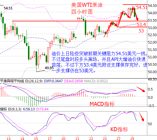 一杯水再燙再難忍,也不要放手,因為在放手的那一刻,你失去的不只有水,還有杯子。鉛筆畫的畫再美,也都是灰色的,行情走的再惡心,也都是正確的,就算沒賺錢也不要抱怨,因為你永遠不知道市場什么時候眷顧你的勇敢。 消息面: 本周三(12月28日),WTI原油2月期貨報收54.20美元/桶,漲幅0.30美元或0.6%;布油報收56.39美元/桶,漲幅0.30美元,或0.53%。由于雙節(jié)因素且市場正在觀望,行情波動并不劇烈。盤中美布兩油分別最高觸及54.36美元/桶和57.27美元/桶。 昨日交投量依然十分清淡,最近月合約交投僅有23.8萬手,遠遠低于52.5萬手的200日均值。由于當前處于圣誕、新年雙節(jié)疊加時刻,交投量預計會繼續(xù)維持低迷。市場正在持幣觀望即將于幾天后的明年1月1日生效的里程碑式減產(chǎn)協(xié)議。伊拉克原油部長阿魯艾比周三表示,該國將會于1月減產(chǎn)20-21萬桶/日。伊拉克是過去2年中,增產(chǎn)最快的OPEC國家。美國至12月23日當周API原油庫存意外創(chuàng)6周最大增幅。這讓油價在數(shù)據(jù)公布后短線下跌;加上國內(nèi)成品油價迎來上調(diào)。 原油技術(shù)面分析: 美國WTI原油從四小時走勢圖來看,油價上日險些突破前期關(guān)鍵阻力54.51美元一線,不過尾盤時段多頭離場且API大增,油價快速回落,下方53.4美元附近支撐仍保存完好,進一步支撐仍關(guān)注53美元。 從指標來看,K線觸及上軌多頭離場回落,附圖MACD指標快慢線粘合拐頭偏下行,紅色動能柱縮量;KD指標快慢線死叉向下發(fā)散。 綜合來看,技術(shù)面顯示油價仍有回落需求,不過目前觸及支撐能否繼續(xù)下探還是位置,并且早盤時段交投清淡,預計亞盤時段油價窄幅震蕩,因臨近減產(chǎn)協(xié)議執(zhí)行油價將獲得支撐,操作上仍建議低多為主。 美原油操作建議:低多為主 53美元附近做多,目標看向54美元上方,止損在52.6美元下方; 靠近54.5美元做空,目標看0.7美元左右,止損0.2美元。 白銀技術(shù)面分析: 現(xiàn)貨白銀從四小時走勢圖來看,白銀價格目前仍受阻于16.07美元這個阻力,若能有效突破則有可能上測16.25美元附近,下方支撐仍可關(guān)注15.8美元附近。 從指標來看,K線跌破中軌后持續(xù)反彈至觸及上軌,附圖KD指標形成金叉向上延伸。 綜合來看,技術(shù)面顯示銀價仍有上漲動能,不過走勢上后繼乏力,但后市仍預期將上漲,操作上建議以回落做多為主。 現(xiàn)貨白銀操作建議: 15.9美元附近做多,目標看向16.2美元附近,止損15.8美元下方; 16.25美元附近做空,目標看向16美元附近,止損在16.3美元上方。 今日重要關(guān)注數(shù)據(jù): 15:00 英國 12月Nationwide房價指數(shù)月率(%) 21:30 美國 截至12月24日當周初請失業(yè)金人數(shù)(萬) 21:30 美國 11月批發(fā)庫存月率初值(%) 22:45 美國 截至12月25日當周彭博消費者信心指數(shù) 23:30 美國 截至12月23日當周EIA天然氣庫存(億立方英尺) 00:00 美國 截至12月23日當周EIA原油庫存(萬桶) (以上文章由春雨聚金原創(chuàng),轉(zhuǎn)載請注明出處。溫馨提示,投資有風險,入市需謹慎。以上僅代表春雨個人觀點,不作操作依據(jù),據(jù)此操作風險自擔) 文/春雨聚金(chunyujujin) |