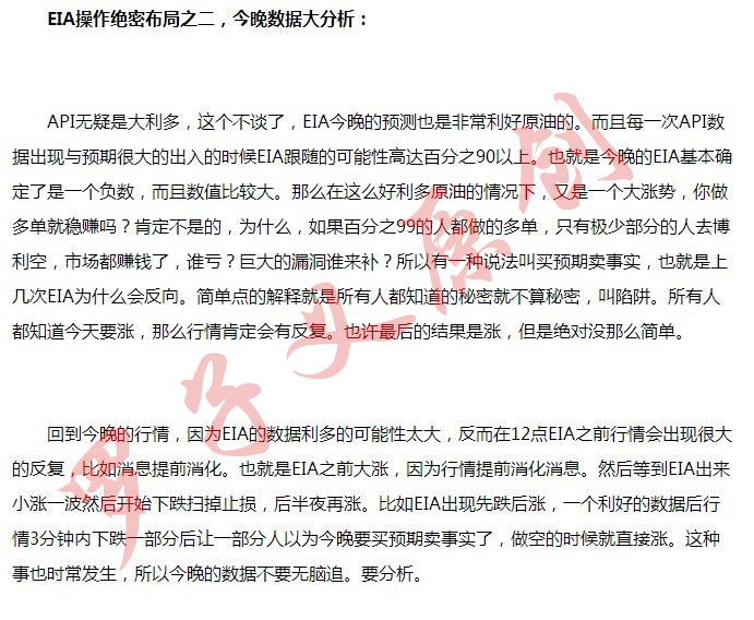 文/羅子義 前言: 夜深了有一個投資朋友找到子義,心情很低落,晚間原油虧損不少,說是老師預計EIA利多就一直在堅持自己的做多思路,但是行情只是數據出來之后開始回落,油價大跌。而原油一路下跌之后老師還是讓他布局多單,一直讓他扛著,到最后直接爆倉了。后面我們也聊了很多,在聊天的過程中我發現些問題,在這里說說一些自己的看法,希望能對大家有所幫助,大家可能一直很奇怪,為什么一直虧損,乃至哪怕單子老是對的情況下但資金卻一直在不斷的減少,換了分析師還是一樣的結果。有多少客戶抱怨他前一個老師過了晚上12點一句帶好止損過夜吧,然后就去睡了。你知道那個時候客戶的心情么?冰涼冰涼的,你走了他一直盯著盤面不知所措你知道那種感覺么? 子義知道能成為一位分析師他的技術分析水平不會差太多。關鍵是對待客戶的態度。我也知道你們都有實力帶客戶賺錢。但是子義希望你們能真心對待每一個投資客戶。錢是賺不完的,子義希望你們可以真真正正的對得起自己分析師的稱號。一個成功的分析師不是你帶客戶賺了多少而是客戶一直跟著你做。無論盈虧對客戶的負責,這是我作為一個分析師的職業道德。 羅子義今晚EIA絕密布局完美分析行情,百分百正確。你知道為什么數據利多反而跌了嗎?請看以下圖片分析。 這是羅子義前面的分析,那么你如果做了多單被套怎么辦? 以下是解決方案,首先你如果倉里有足夠的資金,那么不要緊,你可以有兩種解決方案。 第一對鎖等待對沖利潤。 何為對沖,簡單點說就是鎖倉后帶止盈,這樣能減少虧損,而且能在低位補多單,拉低均價。具體點位可參照小時線的黃金分割線去操作,因為每個平臺點位不一致,所以可以咨詢本人了解。 二,你可以金字塔逐漸建倉,建倉的手數要逐步的增加,也就是輕倉到常規倉位。切記不可重倉,具體點位依然按照黃金分割線的分批建倉。點位可咨詢本人。 如果你資金比較小,那么可能就比較麻煩。 首先你要做的是平復心態,至少大趨勢還是多單沒有變,所以你的單子也沒到不能救的地步。 第二個是要在反彈一些的時候逐步減倉一些減少虧損和風險。畢竟只要錢還在一些,就能賺回來,如果虧完了就什么都沒了。 第三個是最重要的,情趕緊聯系我我可以幫你解決。 寄語: 投資,應是一種理性行為。最可怕的不是你的眼光,而是情緒。投資理財不是一朝一夕的事,前期的虧損,不代表后期的虧損;前期的獲利,不代表后期的獲利。所以,虧損的朋友不要氣餒,獲利的朋友不要自滿,讓自己以平和的心態理性的投資。本文撰稿僅為作者個人觀點! |