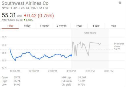 三只個股成“新寵” 航空股隊伍壯大 去年第四季度,伯克希爾的投資組合出現(xiàn)三個新面孔:當季建倉美國西南航空、孟山都和美國衛(wèi)星廣播公司Sirius XM Holdings。 四季度伯克希爾斥逾20億美元買入西南航空約4320萬股,持倉價值在其投資組合中占1.46%。當季西南航空均價為45美元/股,目前股價約55.31美元/股,市值約340億美元,市盈率15.61倍,市銷率1.72倍;過去12個月股息率為0.68%,遠期股息率為0.72%,過去十年年度收益平均增長16.7%。 在建倉西南航空以前,伯克希爾麾下已有達美航空、聯(lián)合大陸控股、美國航空這些航空股。四季度這三只個股持倉均較上季度增多。 伯克希爾持倉公布后,上述航空股普遍走高。本周二收跌0.75%的西南航空股價盤后反彈,盤后漲逾1.4%。美國航空股價當天收跌1.77%,盤后漲逾2%。