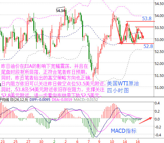 金盤神手:2.16晚間黃金白銀原油行情走勢專業操作建議 消息面 在昨日EIA一片利空氛圍的籠罩之下,周四歐佩克傳出好消息提振油市。據路透最新報道,有消息人士爆料稱,如果原油庫存仍然過高,歐佩克可以在5月的會議中延長和深化減產協議日期。如果所有產油國都同意合作有效,歐佩克和非歐佩克產油國將延長減產協議。該消息傳出后,美布兩油紛紛直線飆升至日內高點。 基本面分析 周四(2月16日)亞歐時段,國際原油價格震蕩走高,目前美國WTI原油交投于53.23美元/桶,微漲0.23%。受隔夜美國公布EIA庫存暴增近千桶影響,油價短線下跌,隨后反彈上升至日內高位報53.51美元/桶,EIA數據公布后,為何油價上演大反轉,轉跌為漲? EIA報告顯示,截至2月10日當周,美國原油庫存增加952.7萬桶,至5.181億桶,增幅1.9%。連續6周錄得增加,同時已經刷新紀錄高位,市場預估為增加351.3萬桶。與此同時,美國墨西哥灣原油庫存也升至紀錄高位。 原油技術面分析 美國WTI原油從四小時走勢圖來看,昨天油價在EIA的影響下寬幅震蕩,并且尾盤時段回落至相對低位,正符合筆者昨日預期,昨日筆者給出的高空策略也正確,日內阻力依舊可以關注昨日做空點位53.5美元附近,同時53.8及54美元附近依舊存在阻力,支撐關注52.8美元附近,關鍵支撐看向布林帶下軌52.5美元附近。 從指標來看,K線圍繞布林帶中軌上下震蕩,附圖MACD指標快慢線靠近零軸粘合拐頭向上,綠色動能柱縮量。 綜合來看,目前油價存在進一步上行動能,不過上方空間不大,操作上建議有所回落后做多。 原油部分參考建議 1、回調52.8美元附近做多,目標看向53.5美元附近,止損在52.5美元下方; 2、上方53.8美元附近再考慮做空,目標看向53美元一線,止損在54美元上方; 3、瀝青及其他油類產品(芳烴、樹脂、燃料烴等)與原油行情走勢相同,平臺點位不同,自行把握; 黃金技術面分析 現貨黃金從四小時走勢圖來看,日內K線價格震蕩上漲,一度升穿布林帶上軌,但隨后迅速回落,上軌壓制強勁,1240是一個強勁阻力。目前金價運行在1235美元附近。下方支撐看向1220美元附近,上方阻力關注1240美元。 從指標來看,布林帶三軌開口擴大,附圖MACD指標金叉向上運行。 綜合來看,目前金價交投于布林帶上軌附近,預計后市將受壓下滑再上漲,操作上建議回落做多。 現貨黃金操作策略 1、回調1228美元附近做多,目標看向1240附近,止損5美元; 2、上方靠近1240做空,目標1228美元附近,止損5美元; 白銀技術面分析 現貨白銀從四小時走勢圖來看,日內K線價格一度上穿布林帶上軌,但受打壓迅速回落至上軌下方,目前銀價18美元附近交投。下方支撐看向17.70美元,上方阻力初步關注18.10大關。 從指標來看,K線價格受布林帶上軌強力壓制,附圖KDJ指標三線拐頭向下。 綜合來看,預計后市白銀價格將小幅上漲,操作上建議逢低做多。 現貨白銀參考建議 1、回調17.70美元附近做多,目標看向18.10附近,止損在17.70美元下方; 2、上方靠近18.10做空,目標看向17.70美元下方,止損在18.10上方; 溫馨提示:行情瞬息萬變,以上建議僅供參考,實時做單以作者神手老師實盤指導為準