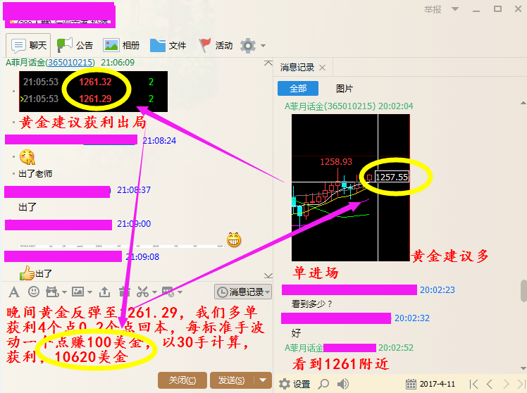 昨日菲月也完美的抓住了這波反彈行情,黃金多單獲利4個點,黃金0.2個點回本,每標準手波動一個點賺100美金,以30手計算,獲利:10620美金 昨天已故,何須感嘆,今天已來,何須惆悵,而明天未至,又何須擔憂。沒有經歷的,敞開胸懷去擁抱,已經經歷的,沉下心來去回憶,正在經歷的,全力以赴去投入。人生的閱歷和財富來自于每一個階段都是精彩瞬間,不應膽怯而放棄,不應困難而退縮。成則英雄,敗則梟雄,總比碌碌無為浪費生命有意義。有時候,成敗就在敢于不敢和干與不干之間。關注菲月,免費訂閱每日原油、瀝青、天然氣、黃金等行情走勢分析,短線操作建議、中長線策略布局。