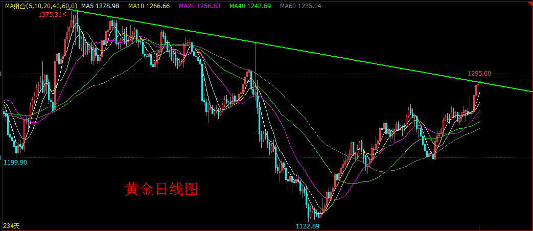 上周風(fēng)險(xiǎn)事件連連,美國(guó)向敘利亞發(fā)射59枚導(dǎo)彈之后特朗普關(guān)于朝鮮問(wèn)題的言論,也導(dǎo)致朝核問(wèn)題局勢(shì)日趨緊張;歐洲方面,法國(guó)大選結(jié)果撲朔迷離,令投資者惴惴不安。隨后,美國(guó)向阿富汗IS控制區(qū)投下“炸彈之母”、朝鮮周末***展示新武器,地緣政治緊張程度的不斷升級(jí),避險(xiǎn)情緒再度升溫,國(guó)際黃金價(jià)格全線上漲。雖然由于周五(4月14日)歐美多國(guó)進(jìn)入復(fù)活節(jié)假期休市、市場(chǎng)交投冷淡而小幅回落, 但國(guó)際局勢(shì)動(dòng)蕩未有緩和的跡象,今日金價(jià)開盤后出現(xiàn)跳空,最高觸及1295.6美元/盎司。 本周,地緣政治風(fēng)險(xiǎn)仍將是焦點(diǎn),朝鮮局勢(shì)何去何從備受關(guān)注,如果特朗普對(duì)朝鮮采取一些軍事行動(dòng),黃金可能會(huì)輕松突破1300美元關(guān)口。數(shù)據(jù)方面沒有重要消息公布,周二營(yíng)建許可、周四費(fèi)城聯(lián)儲(chǔ)制造業(yè)指數(shù)以及初請(qǐng)人數(shù)等數(shù)據(jù)。實(shí)物金方面,世界最大黃金ETF--SPDR Gold Trust 周四持倉(cāng)較上日增加6.51噸,當(dāng)前持倉(cāng)量為848.92噸。 黃金從大級(jí)別來(lái)看,周線收大陽(yáng)線,形成多頭排列的走勢(shì),行情自受到特朗普影響后,強(qiáng)勢(shì)突破一路走高,站穩(wěn)200日均線形成看漲形態(tài)。本輪的上漲是由于戰(zhàn)爭(zhēng)和地緣政治的不確定性導(dǎo)致的,同時(shí)技術(shù)面上突破1264一線高點(diǎn)后繼續(xù)上漲,后市有望展開進(jìn)一步攻勢(shì)。今日早盤跳空高開,直接突破1375-1337趨勢(shì)線壓制,維持在1290上方盤整,技術(shù)面支撐黃金進(jìn)一步走高,多頭占領(lǐng)上風(fēng),日內(nèi)短線關(guān)注上方1300整數(shù)位關(guān)口,下方關(guān)注1288一線支撐,跟隨趨勢(shì),回落繼續(xù)逢低進(jìn)場(chǎng)做多為主。若跌破1288,將進(jìn)一步回撤,考驗(yàn)上周四的低點(diǎn)1281的支撐,可依托1281繼續(xù)逢低做多。 操作計(jì)劃:依托1288、1281分批做多,統(tǒng)一下破1281止損,目標(biāo)看1295—1300—1205。 |
