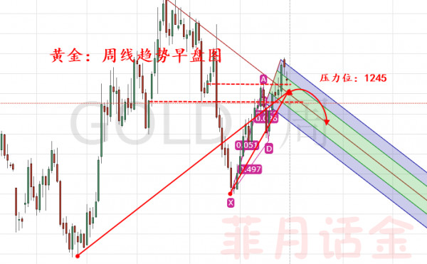 黃金白盤操作建議:今日1242--或者1243附近放《空》止損:1248目標下看8--13美金。