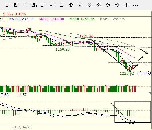 黃金昨日繼續收陰,最高收在1241,最低收在1225。黃金亞盤,歐盤開盤便不斷下跌。反倒是晚間黃金后半夜在1225附近來回震蕩,而今天早上開盤1227,最高達到1235.黃金昨日后半夜意外停止下跌,對于今天黃金的多頭來說是一個很好的鋪墊。今日非農,菲月預計在非農來臨之前日內會有一波拉升。