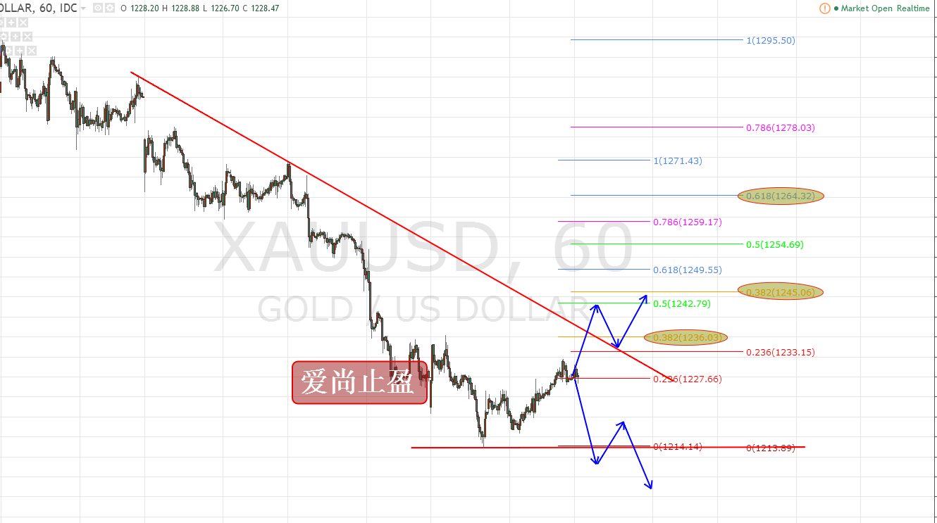 無論五一還是國慶,春節還是端午,只要行情在,我都一直在,金評也一直在更新,好久都沒有給自己放個假,這段時間,算是給自己放了個長假,攜家人一起出國度假,金評未能更新,但VIP群的喊單一直都在進行。 上周,本人在朋友圈明確的指出黃金的關鍵支撐1214,并提示,在1214上方可以嘗試性抄底,同時,也公開了VIP群在1217-18布局的抄底多單,金價在上周四也再次給到我們做多的位置,按照本人思路執行的朋友,目前已經盈利10美金。上周黃金周線收取一根十字星,黃金周線在三連陰之后收十字,到底是見底還是下跌中的十字修正,這個,我們還有待商榷。金價在觸及關鍵支撐位置之后雖然有反抽,但是,力度上并不是很強,價格也在下降趨勢線之下運行,所以,對于目前黃金的中線多單,還不能確認見底,上方壓力需關注4小時級別下降趨勢線壓制1237一線,此位,也是上周的高點位置,金價只有有效突破此位,才能確定黃金的短期見底,那么,我們布局的1217-18的中線多單,則持倉看至1245-1264,1264一線是本周的強壓力位,本周黃金首次觸及此位附近,均可做空看回落;而下方支撐,繼續關注上周低點1214一線,若價格下破此位,上周周線的十字,就需以修正來對待,屆時,黃金將有望重回弱勢,所以,本周黃金,先看1214-1237區間,突破后作二次跟隨。 日內黃金,下方支撐關注日線5日均線支撐1224,強支撐關注1220;上方壓力關注日線10日均線壓制1230,強壓力1237,操作上,以逢低做多為主,高空為輔。 操作策略: 1224附近多,止損1219,目標看1230-36 |