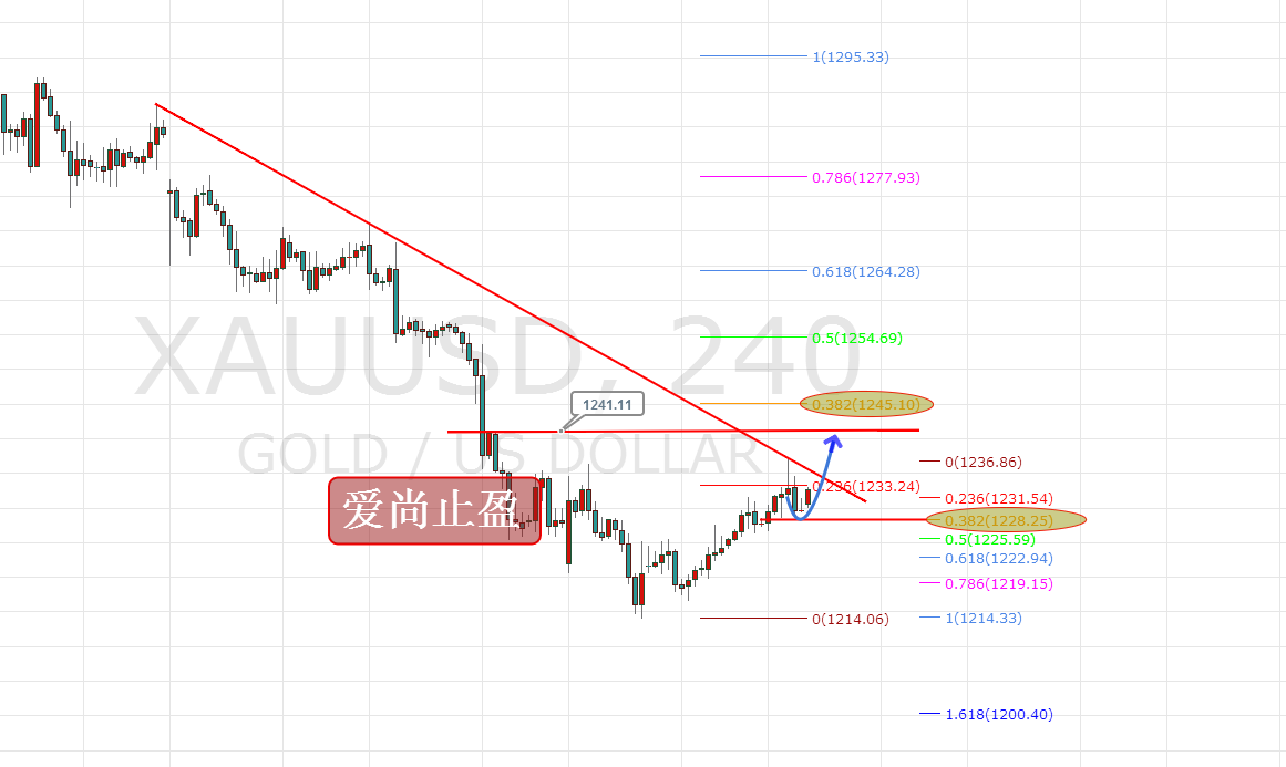 昨日,黃金在早間小幅回撤之后走反抽,午后最高觸及1233附近后受阻回落,歐盤在回撤1229一線后再次上行,美盤時(shí)段,黃金最高沖擊1237后受阻回落,1237一線,本人昨日強(qiáng)調(diào)過(guò),此位,是4小時(shí)級(jí)別的趨勢(shì)線壓制,也是上周的高點(diǎn)阻力,昨日晚間,我們VIP群在1236一線做空,也是小有盈利。 今日,上方壓力繼續(xù)關(guān)注4小時(shí)下降趨勢(shì)線1235-36壓制,強(qiáng)壓力關(guān)注1295-1214回撤反抽0.382對(duì)于的1245,下方支撐關(guān)注1214-1237上升回撤0.382對(duì)于的1228一線,強(qiáng)支撐1223。黃金在昨日收陽(yáng)破高之后,金價(jià)收于日線5/10日均線之上,目前短期均線已經(jīng)完成初步的阻力與支撐的轉(zhuǎn)換,日線短期均線之上,就需以逢低做多為主,當(dāng)前,日線5/10日均線支撐位于1227附近,上升回撤的0.382位置位于1228一線,那么,做多的話,最好的位置,就在1228一線,日內(nèi)黃金觸及此位可多,上方目標(biāo)看至4小時(shí)趨勢(shì)線壓制1235,有效突破后看1240-42。 操作策略: 1228附近多,止損1223,目標(biāo)看1235-41 |