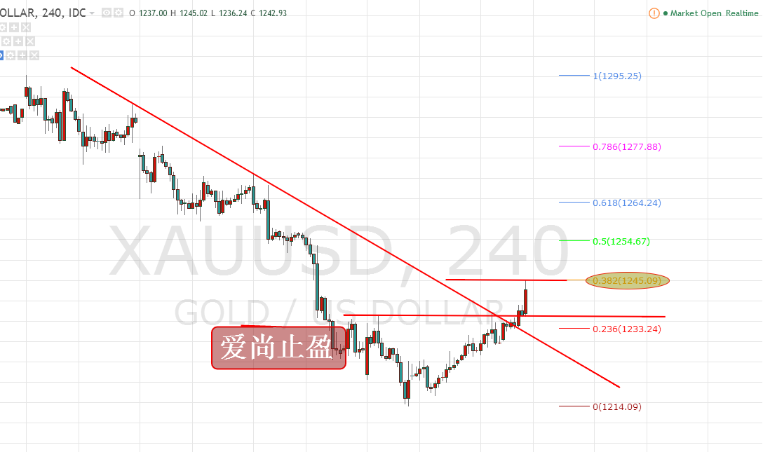昨日,黃金在早間小幅反抽之后,亞歐盤(pán)黃金一直處于高位橫盤(pán)整理,美盤(pán)開(kāi)盤(pán)后,金價(jià)依舊沒(méi)有走出橫盤(pán)格局,直到晚間10點(diǎn),金價(jià)上破前一日高點(diǎn)1237一線之后,黃金打開(kāi)上升空間,1237一線,本人在周一的時(shí)候就說(shuō)過(guò),只有有效突破1237,金價(jià)才能確立短期底部,VIP群在1217-18布局的中線多單,目標(biāo)看至1245-1264,早間,我們的第一目標(biāo)1245已經(jīng)抵達(dá),黃金中線多單目前獲利27美金,朋友圈中公開(kāi)給出中線多單,有多少人跟上的?又有多少人堅(jiān)定持有的?現(xiàn)在還持有1217-18多單的,來(lái)給我點(diǎn)個(gè)贊,讓我認(rèn)識(shí)認(rèn)識(shí)。 今日,早間黃金強(qiáng)勢(shì)拉升,多頭直抵1245一線,昨日晚間黃金1237的有效突破,就預(yù)示著上升空間的打開(kāi),今日的操作思路,就應(yīng)以逢低做多為主,下方支撐位于昨日晚間破高后回撤的低點(diǎn)1236一線,那么,早間黃金,就要應(yīng)該依托凌晨低點(diǎn)1236一線直接做多看上升,但是,早間有點(diǎn)小猶豫,并沒(méi)有給出1236一線的多單,錯(cuò)失了早間的這一波拉升,實(shí)在是可惜。早間黃金,上方阻力關(guān)注1295-1214回撤反抽的0.382壓制,此位的壓制,從時(shí)間形態(tài)而言,應(yīng)該是比較強(qiáng)的,所以,早間黃金,不建議去追多,反而可以在此壓力位附近去布局一個(gè)短空,博黃金遇阻之后的回落,下方支撐關(guān)注這兩天反復(fù)強(qiáng)調(diào)的1237一線,1237目前已經(jīng)形成頂?shù)邹D(zhuǎn)換,若金價(jià)能跌破此位,短期有望迎來(lái)一波調(diào)整。 操作策略: 1245直接空,止損1248,目標(biāo)看1237 |