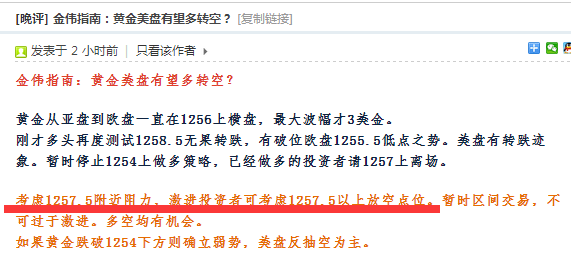 金偉指南:黃金1257.5空單獲利繼續(xù)持有! 黃金從亞盤到歐盤一直在1256上橫盤,最大波幅才3美金。多頭多次測試1259無果轉(zhuǎn)跌。 激進(jìn)1257.5進(jìn)場的空單,當(dāng)前黃金創(chuàng)新日新低1253.68,空單獲利3美金繼續(xù)持有! |
